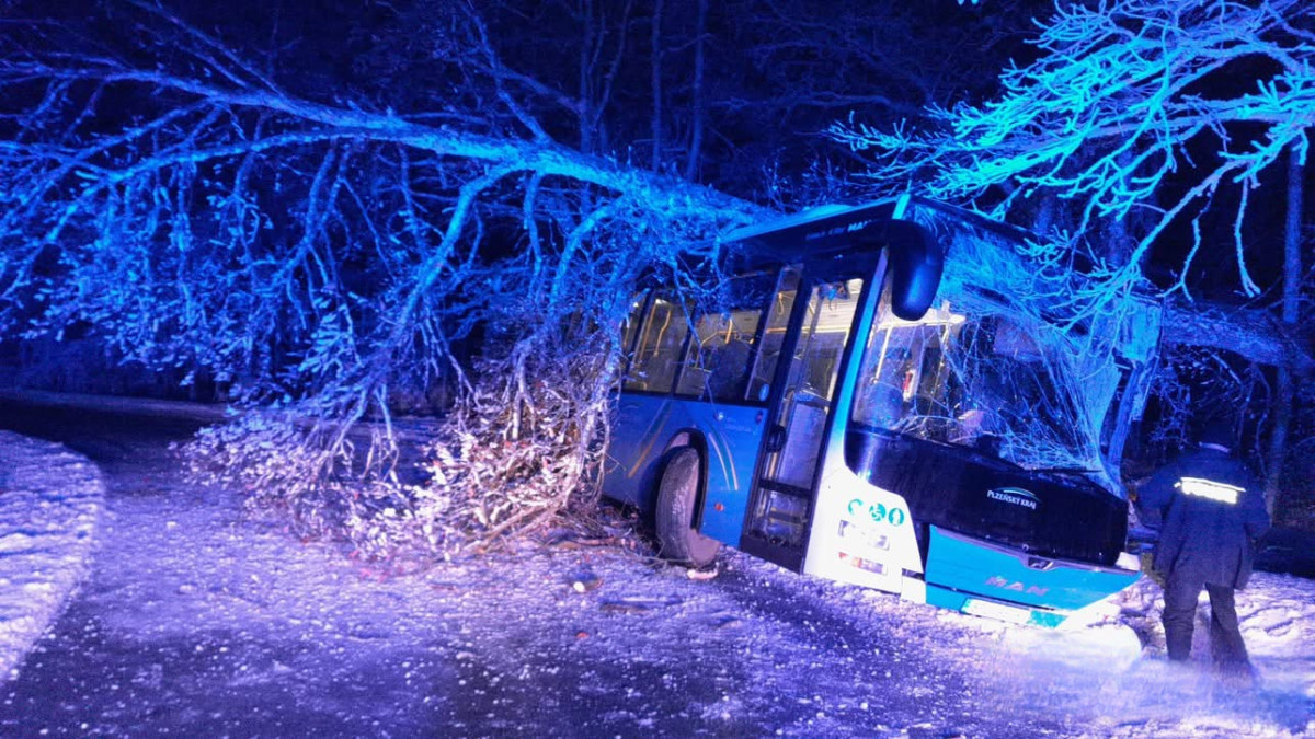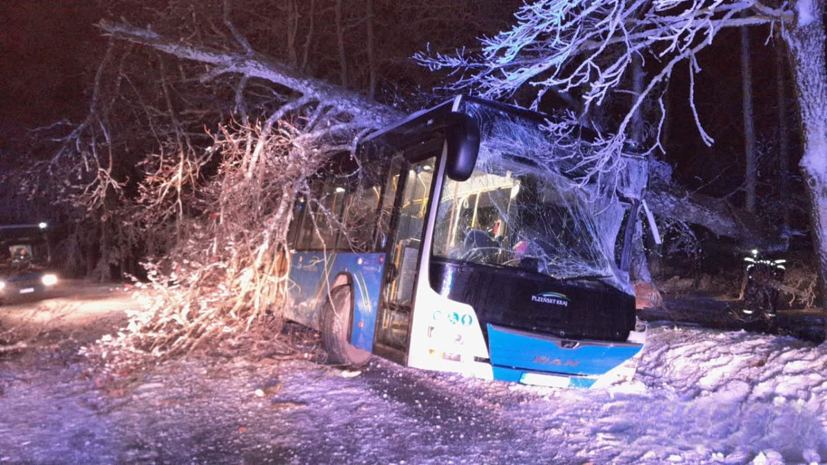 Na autobus spadl strom, kamion zase narazil do domu a hromadná nehoda čtyř vozidel