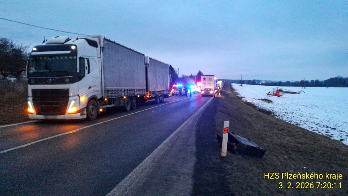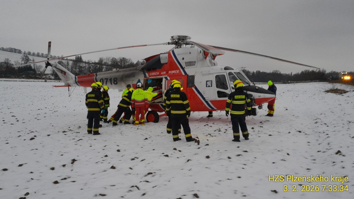 U nehody v Horšovském Týně zasahoval i vrtulník letecké záchranné služby