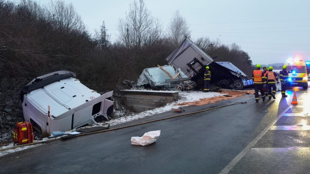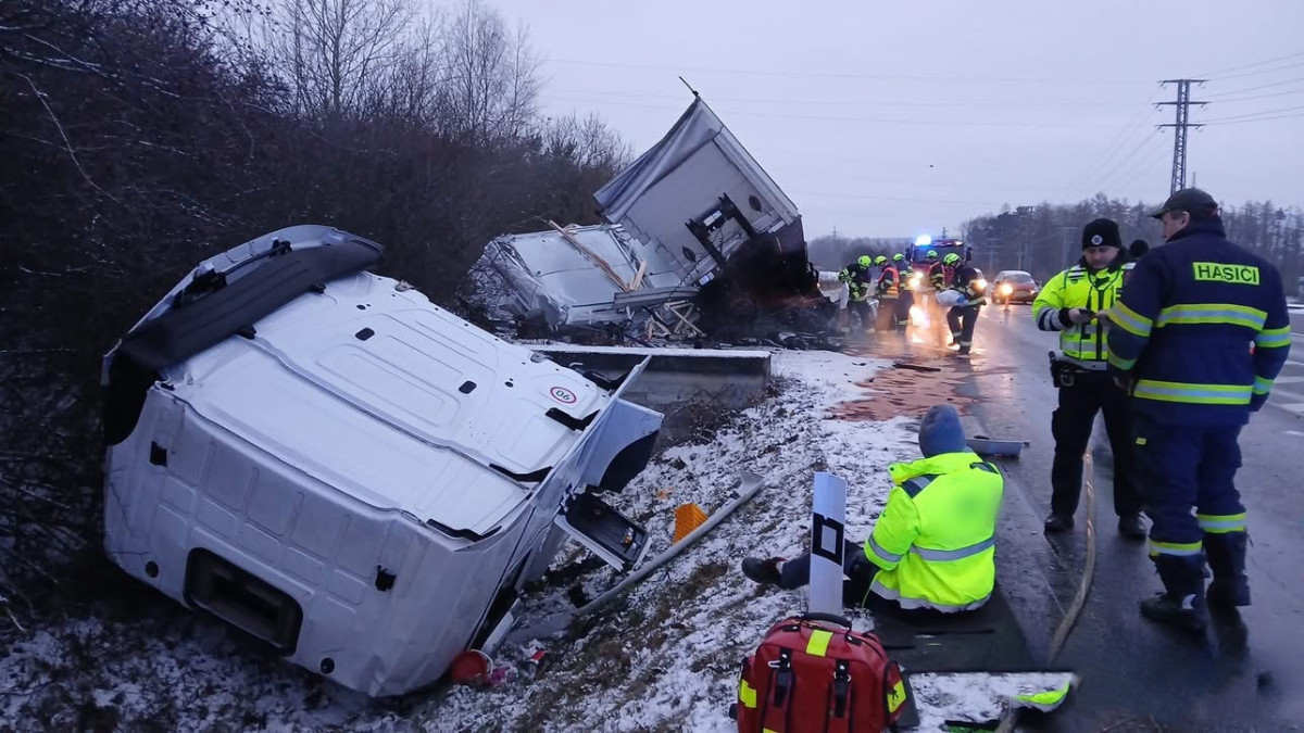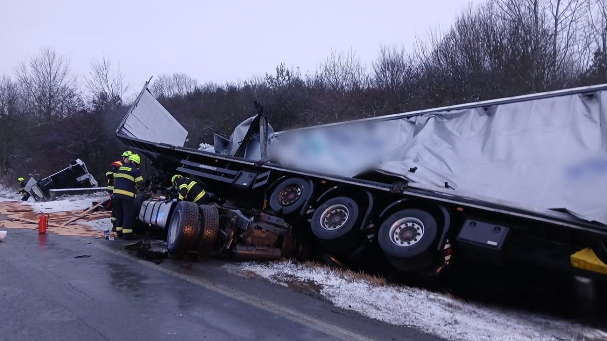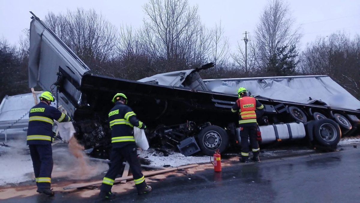 Děsivá nehoda kamionu, utržená kabina s řidičem skončila za mostkem