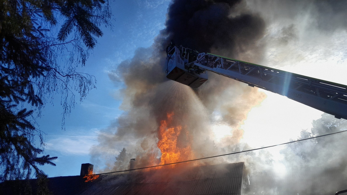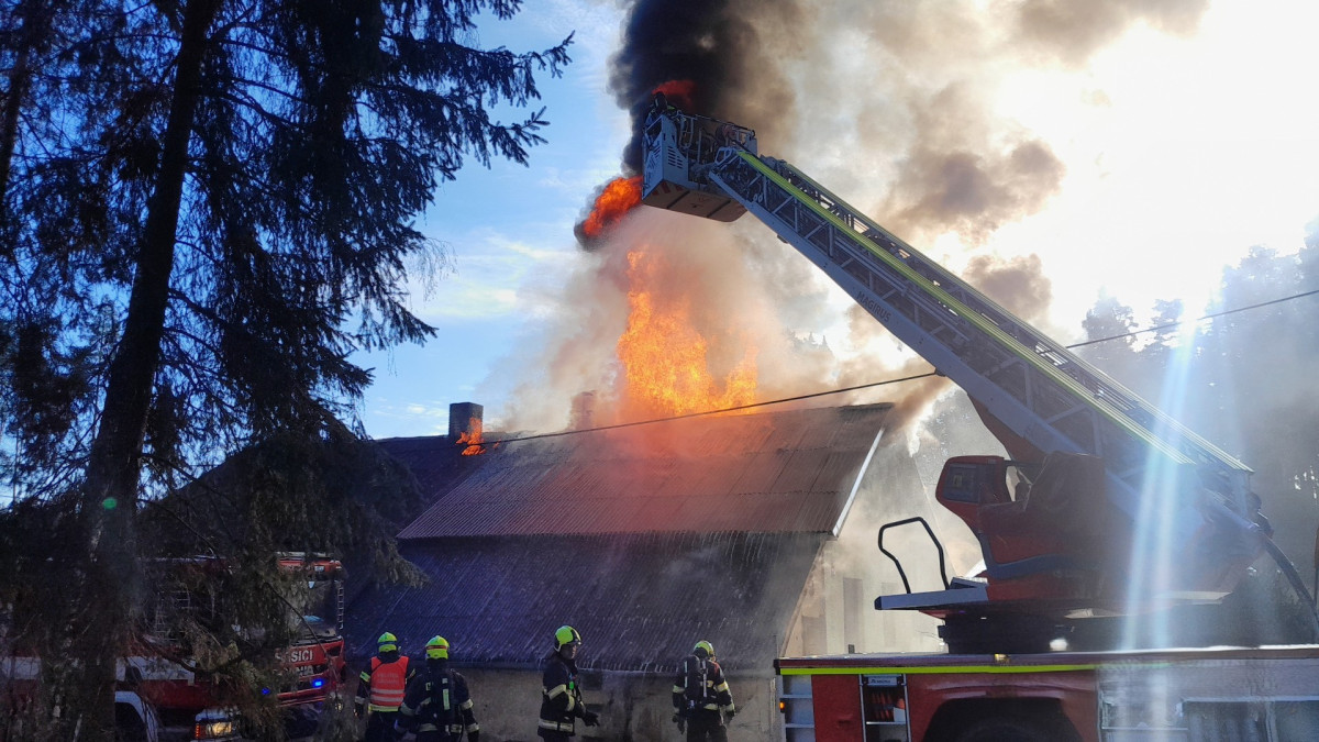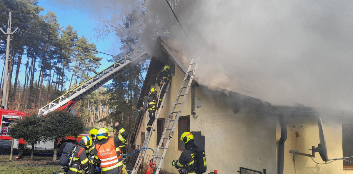 Hasiči bojují s požárem rodinného domu, škody odhadují na miliony