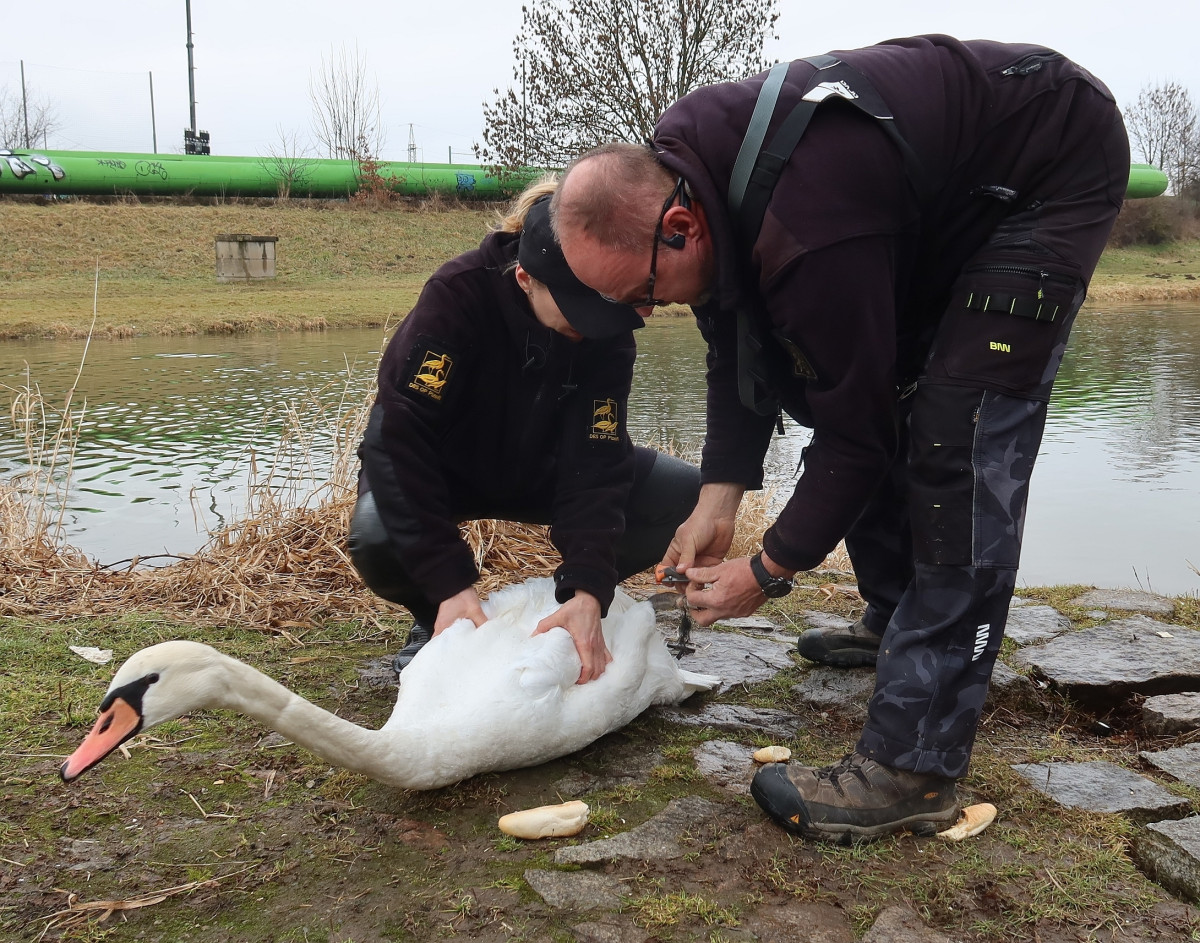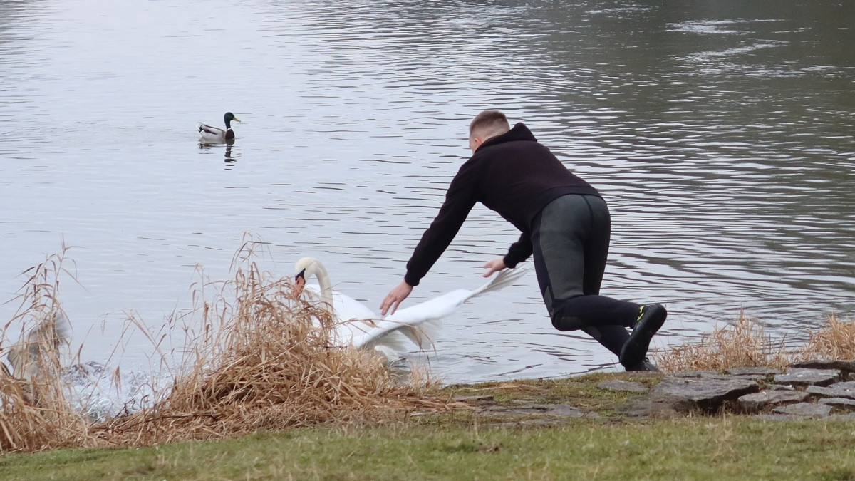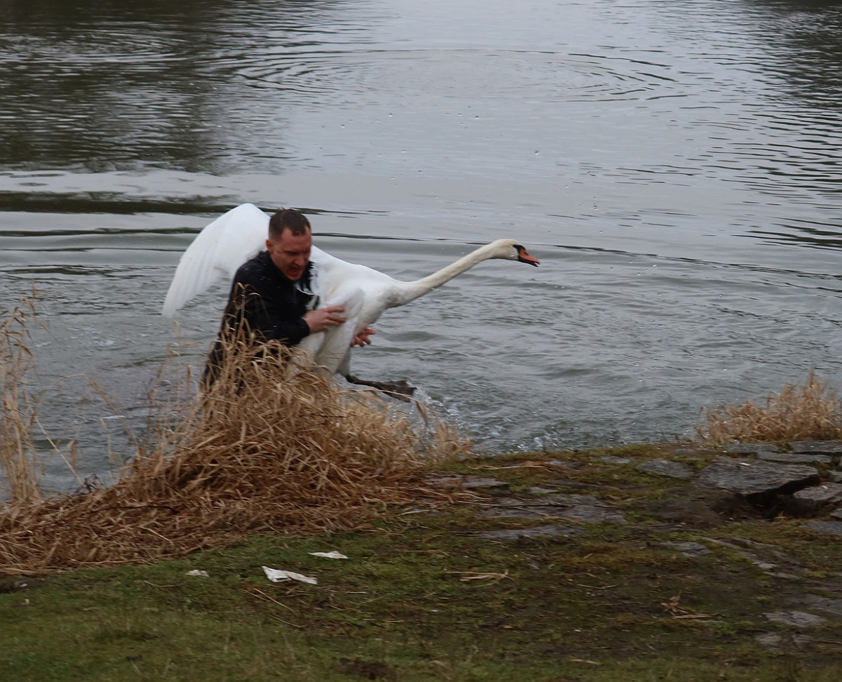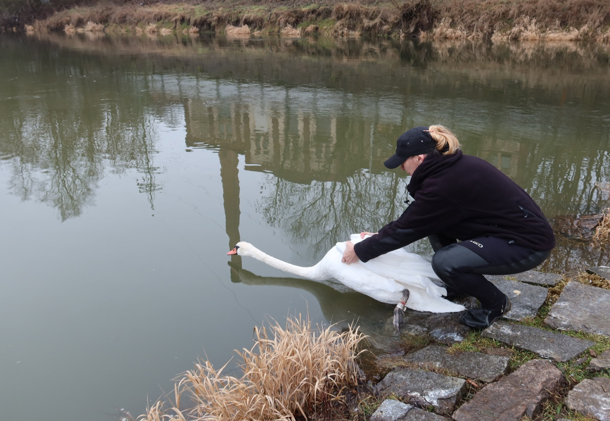 Zraněná labuť vzdorovala pomoci. Pamatovala si záchranářku, která ji už jednou chytila