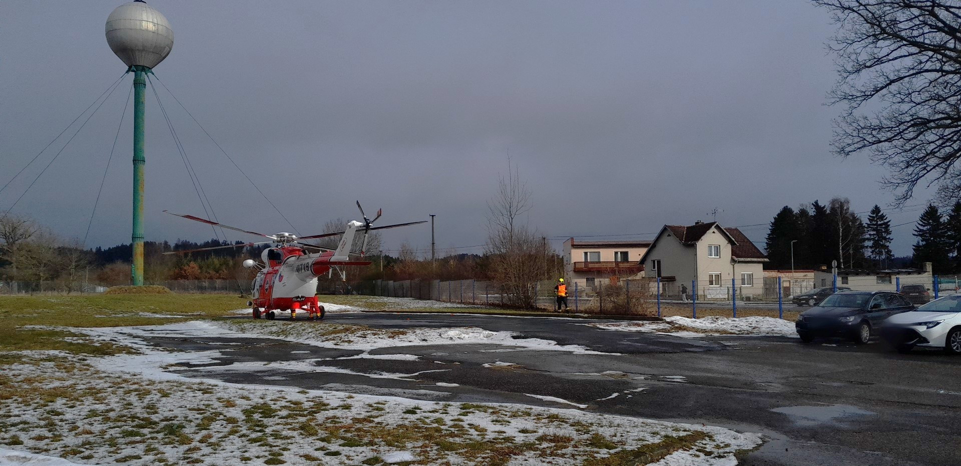 Muž spadl z výšky na dopravník a zůstal tam zaklíněný, letěl pro něj vrtulník