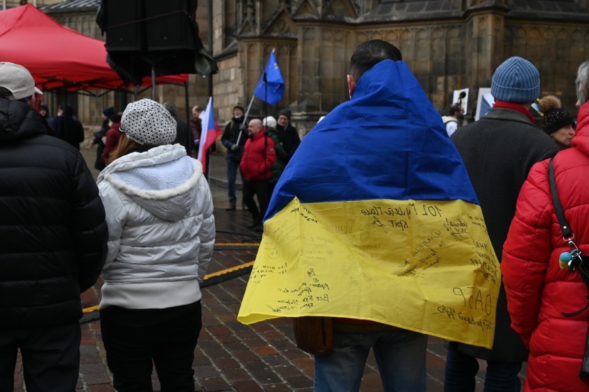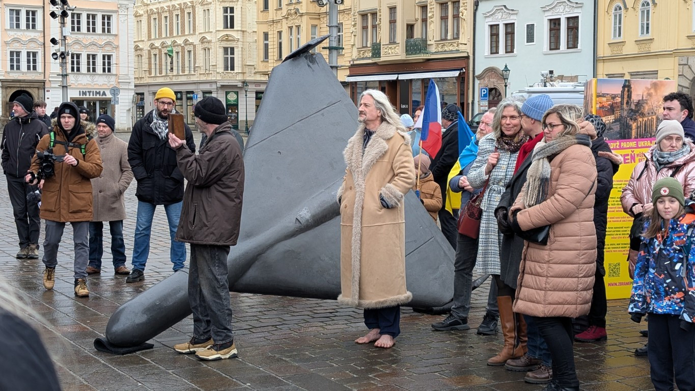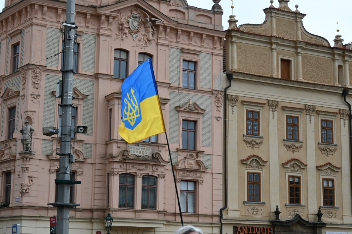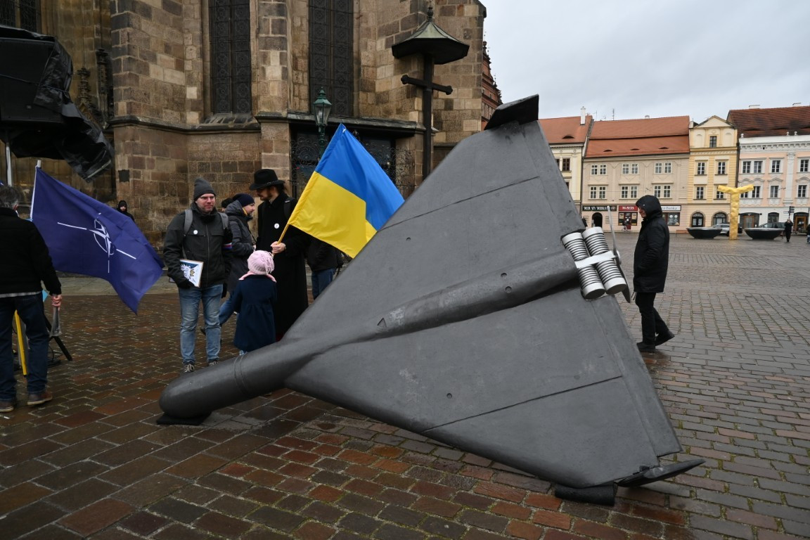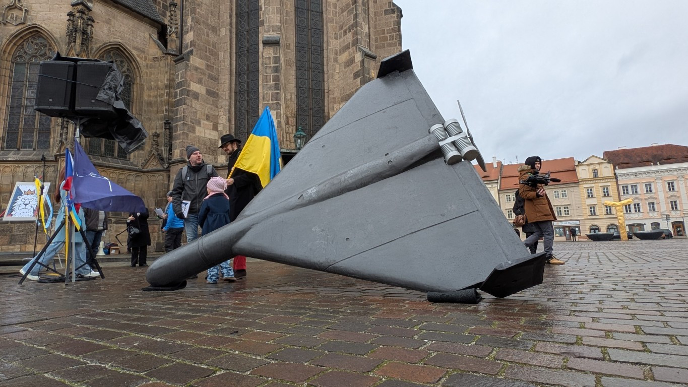 Češi i Ukrajinci vyjádřili na náměstí podporu napadené zemi. Přistál tam i smrtící dron