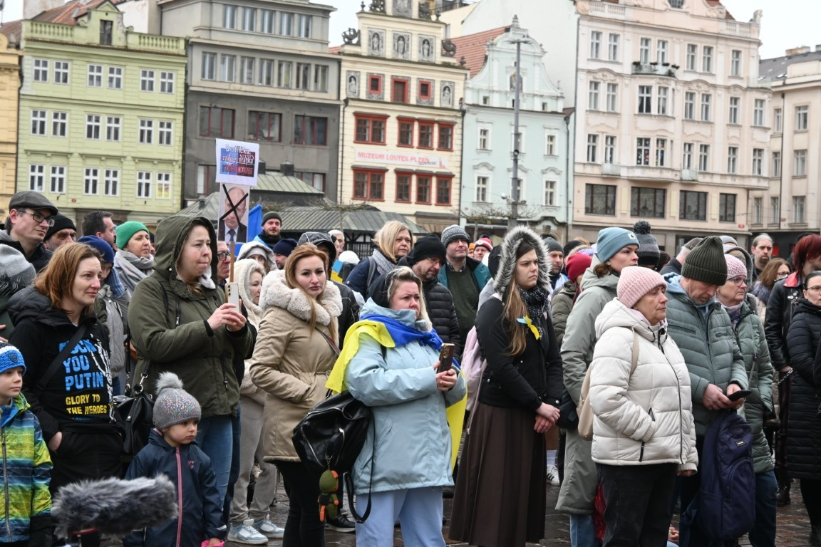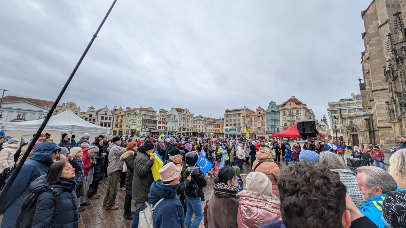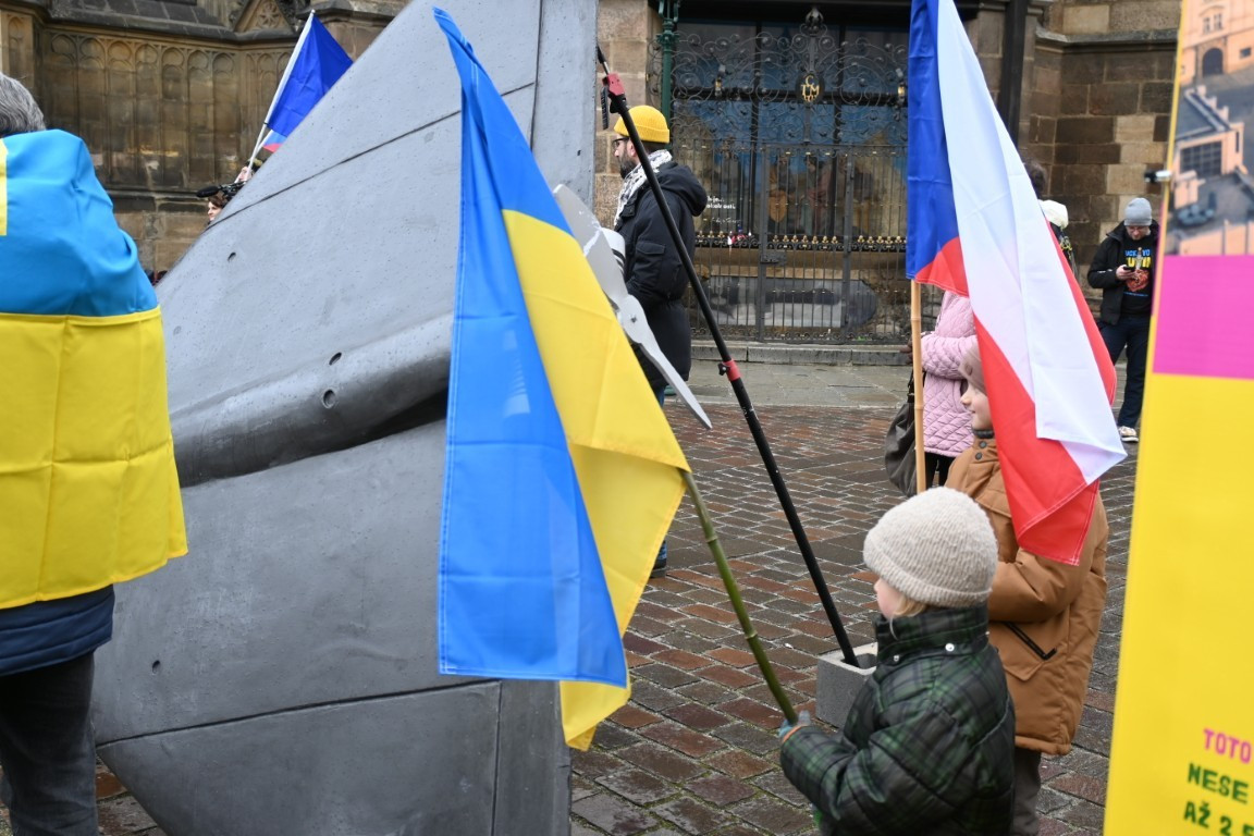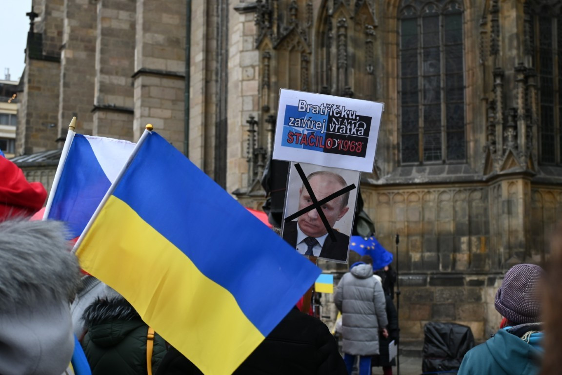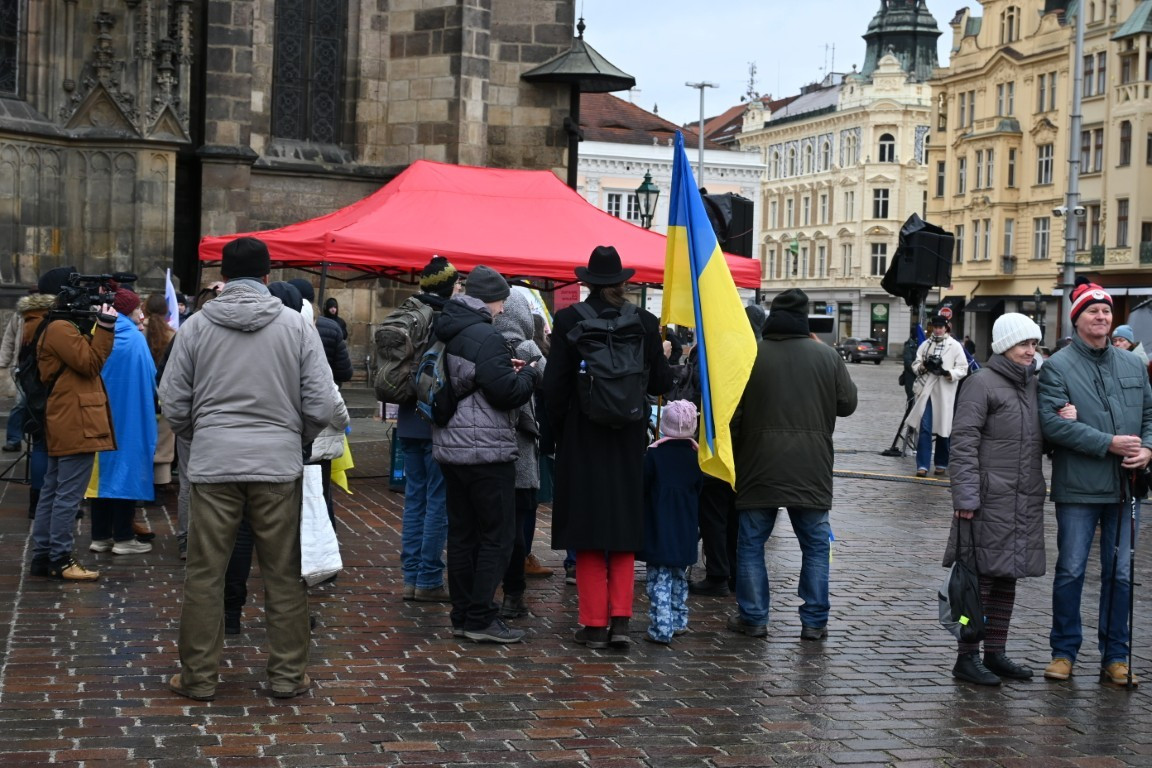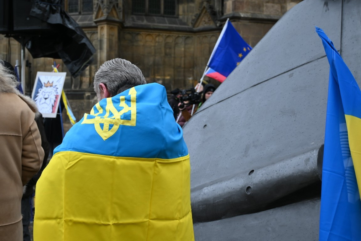 Češi i Ukrajinci vyjádřili na náměstí podporu napadené zemi. Přistál tam i smrtící dron