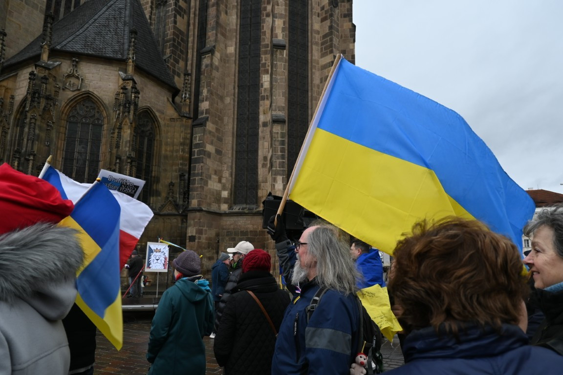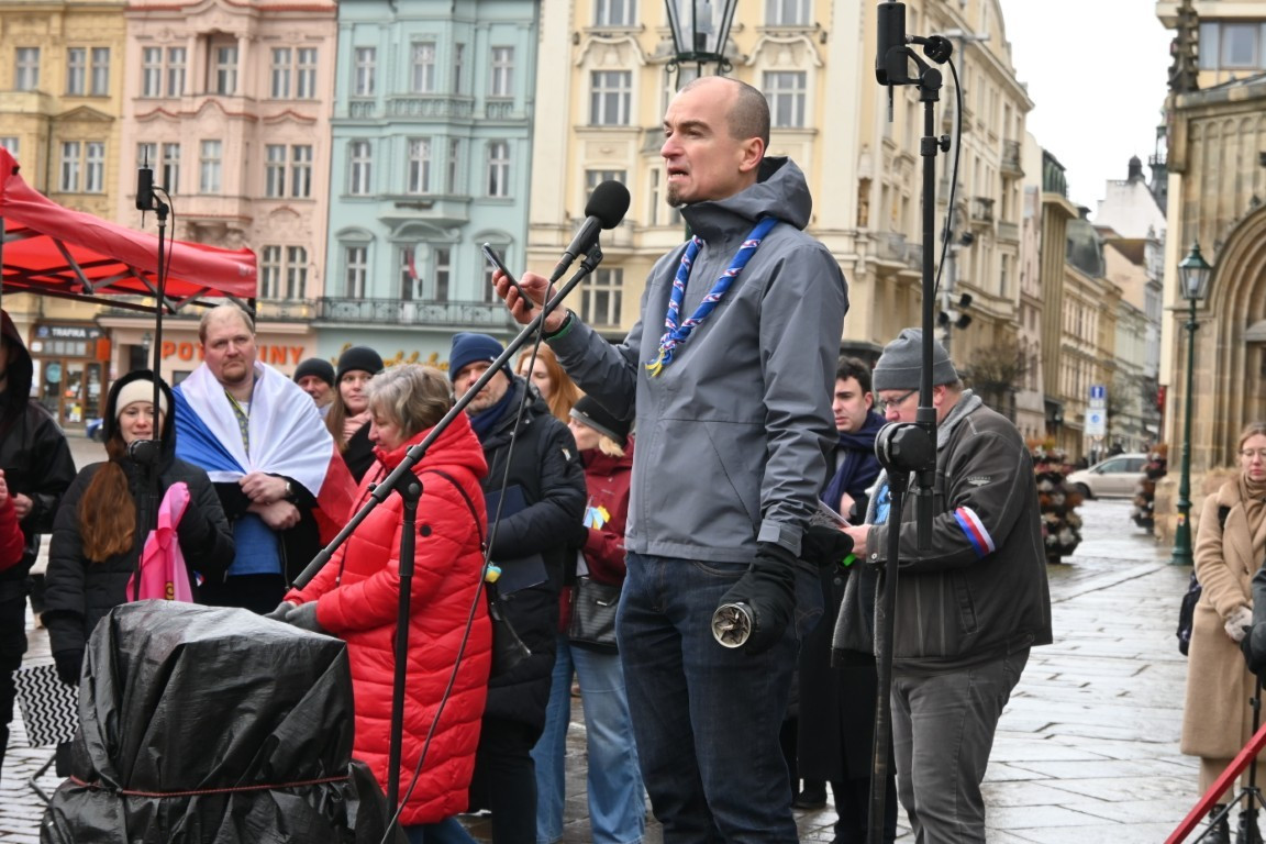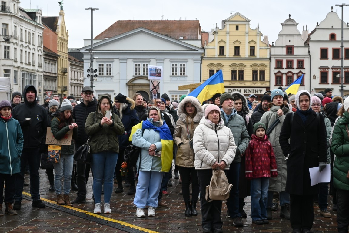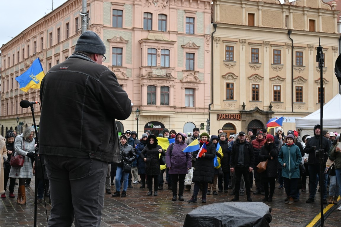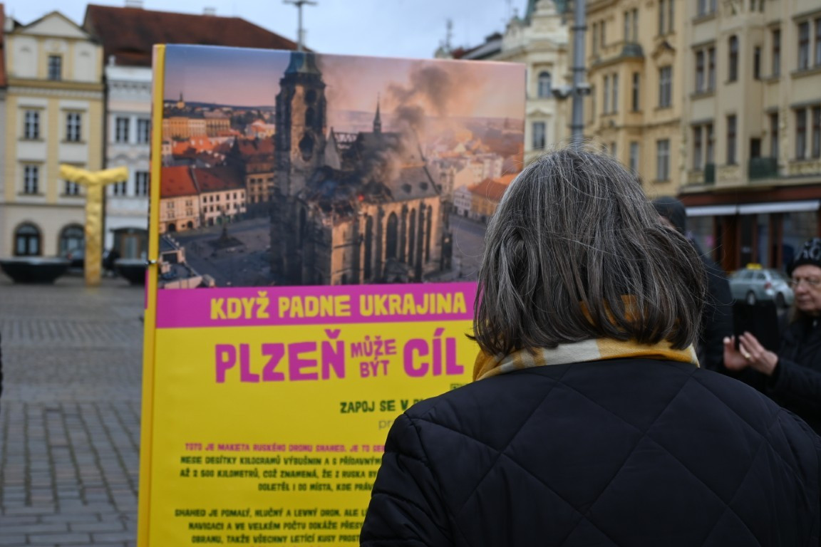 Češi i Ukrajinci vyjádřili na náměstí podporu napadené zemi. Přistál tam i smrtící dron
