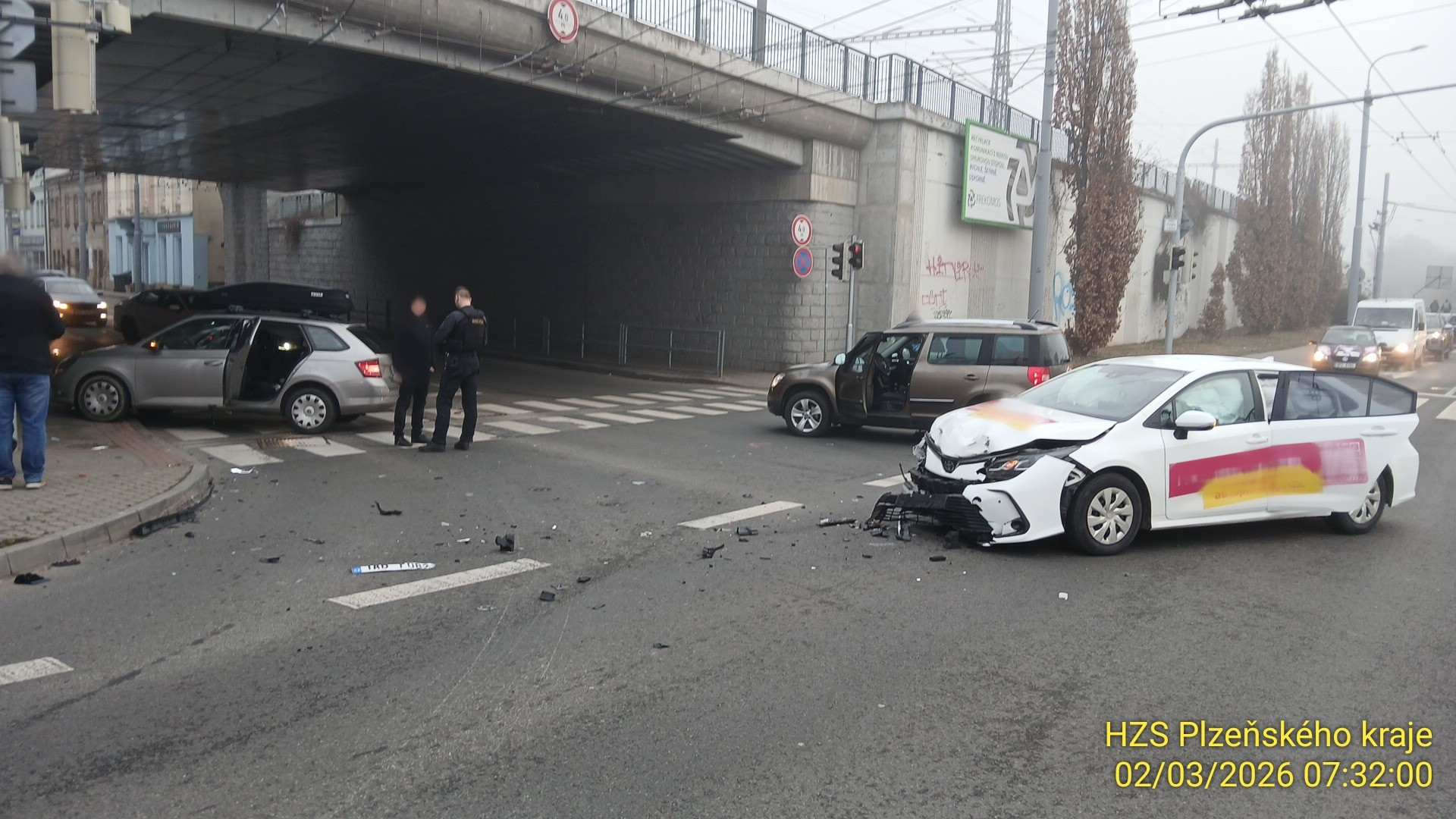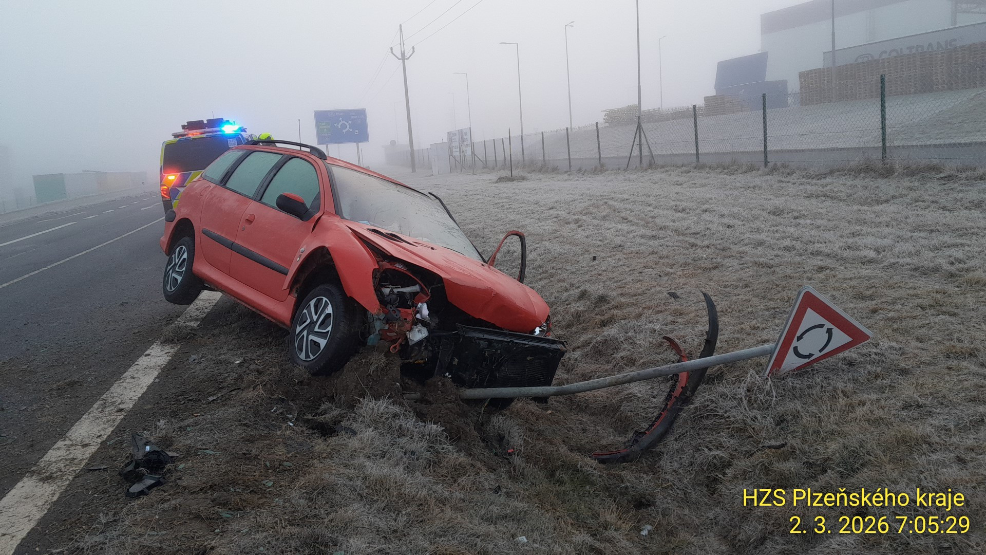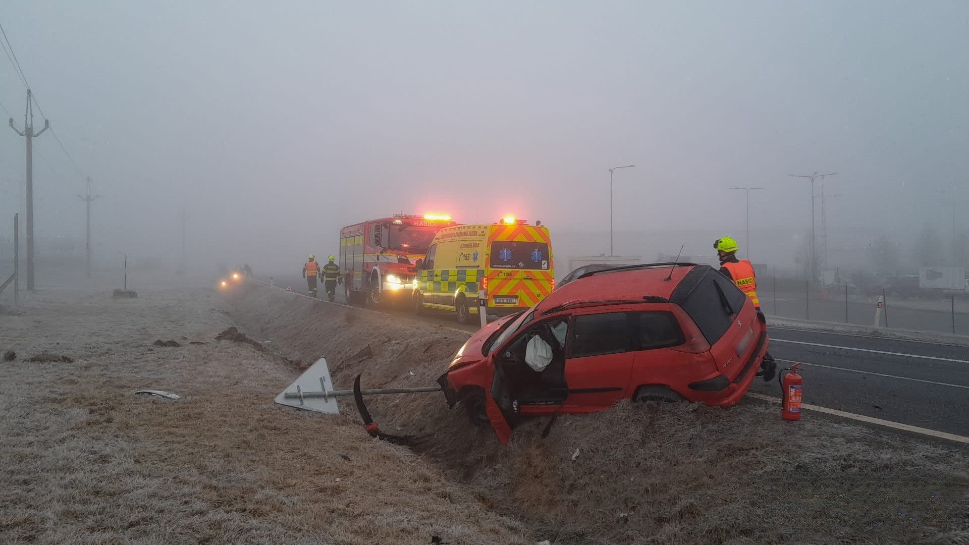 Silnice jsou namrzlé. Hasiči a záchranáři vyjíždějí k nehodám po celém kraji