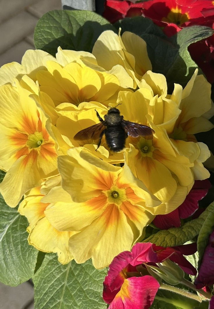 Strašidelná obří včela zavítala do květinářství. Drvodělku přilákaly rozkvetlé petrklíče