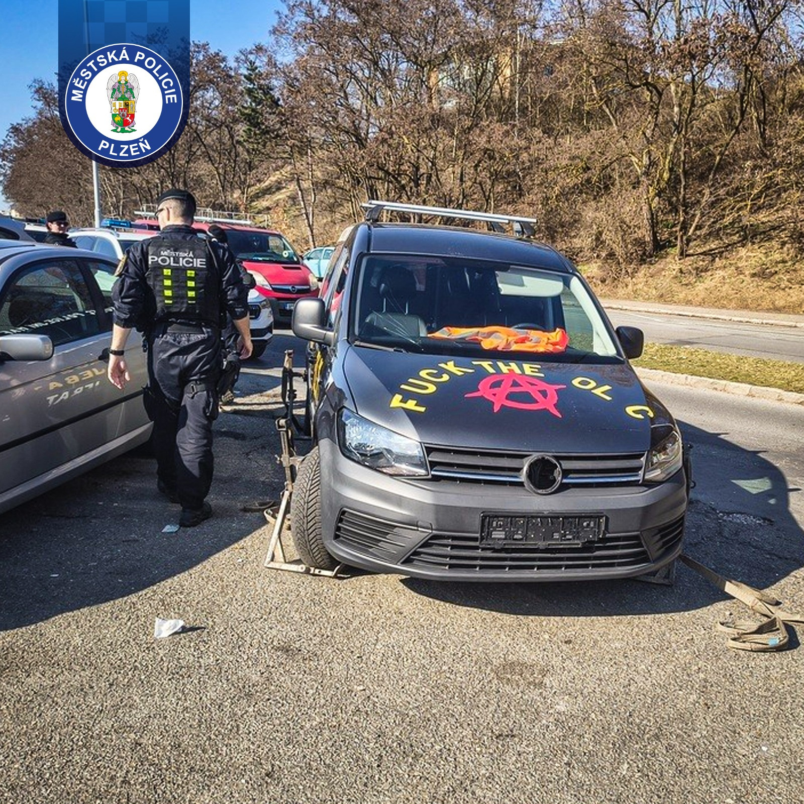 Odstavené auto s hanlivými nápisy strážníci nechali odtáhnout