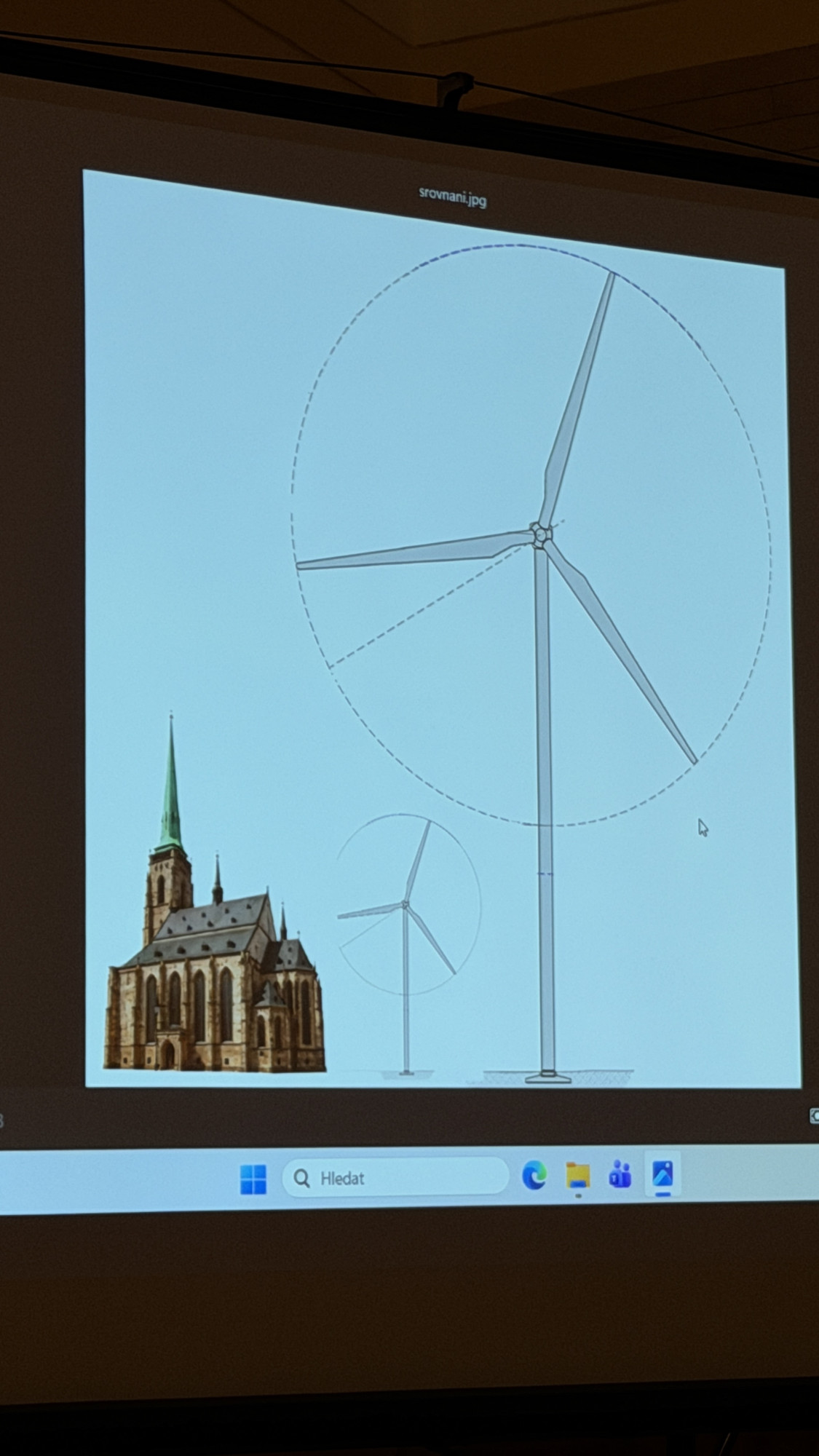 Takto by vypadala obří větrná elektrárna ve srovnání s věží plzeňského chrámu sv. Bartoloměje