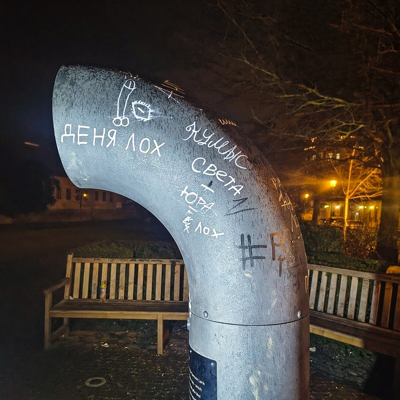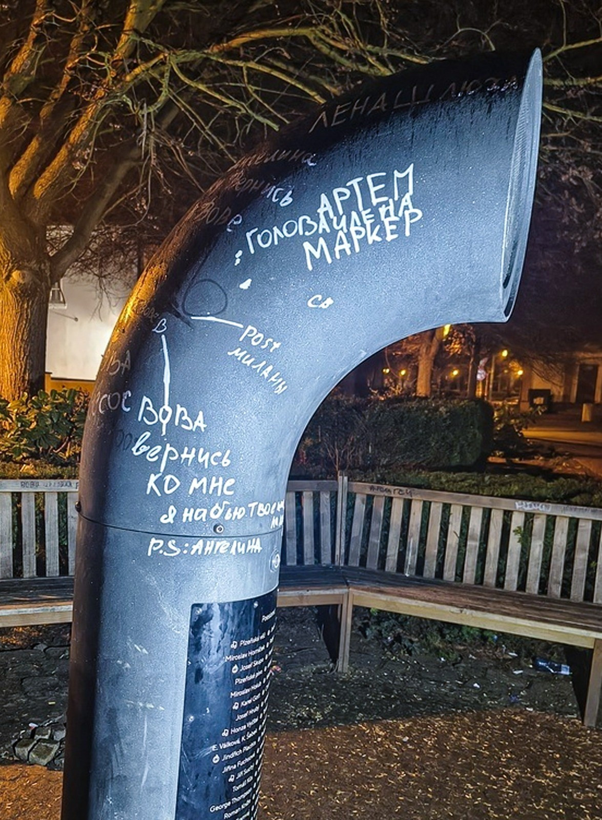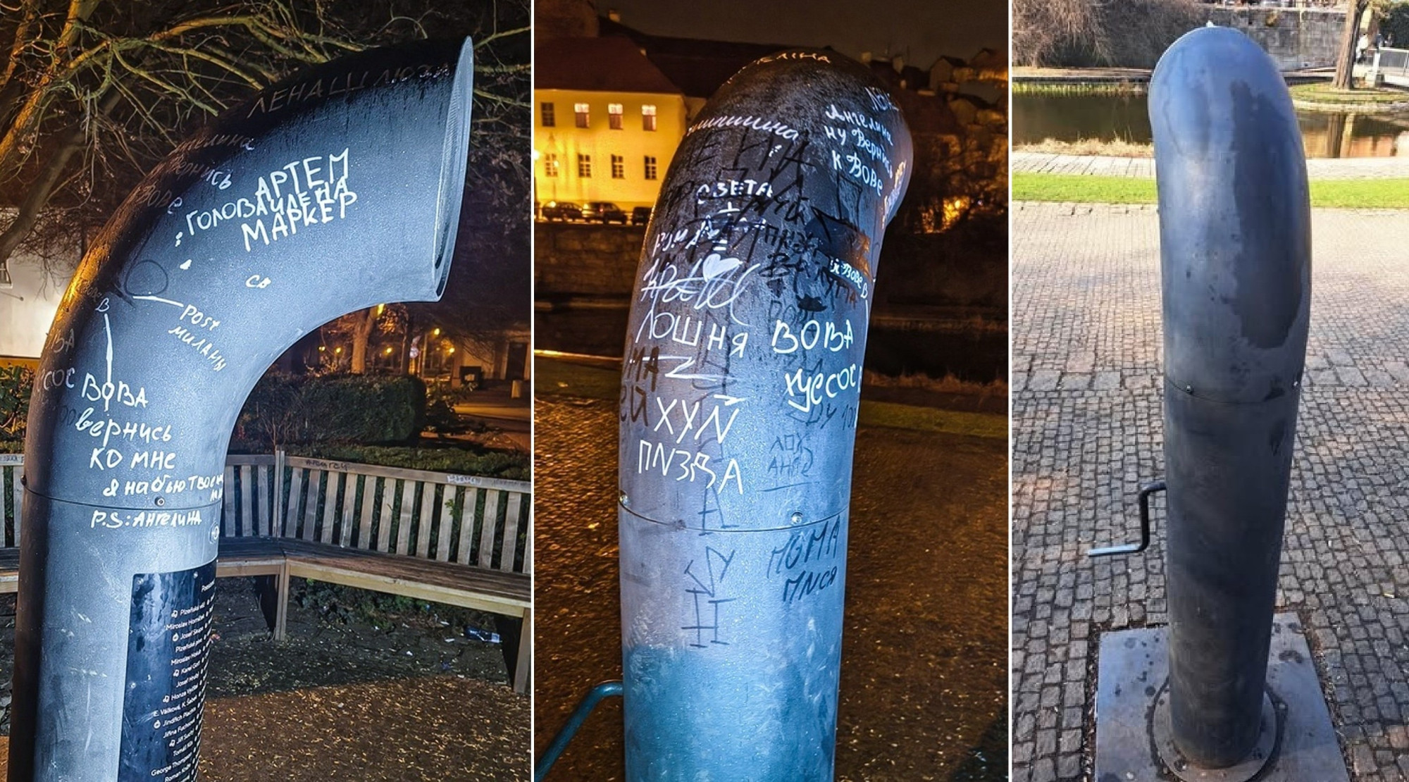 Poesiomat pomalovaný nápisy v azbuce už je čistý. Vyčistili ho Ital, Češi i Ukrajinci