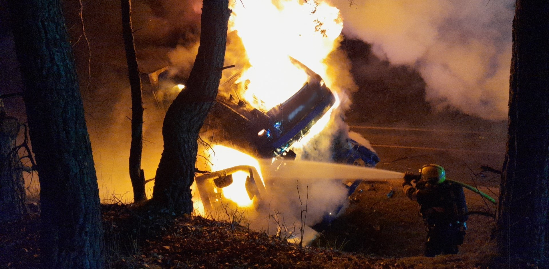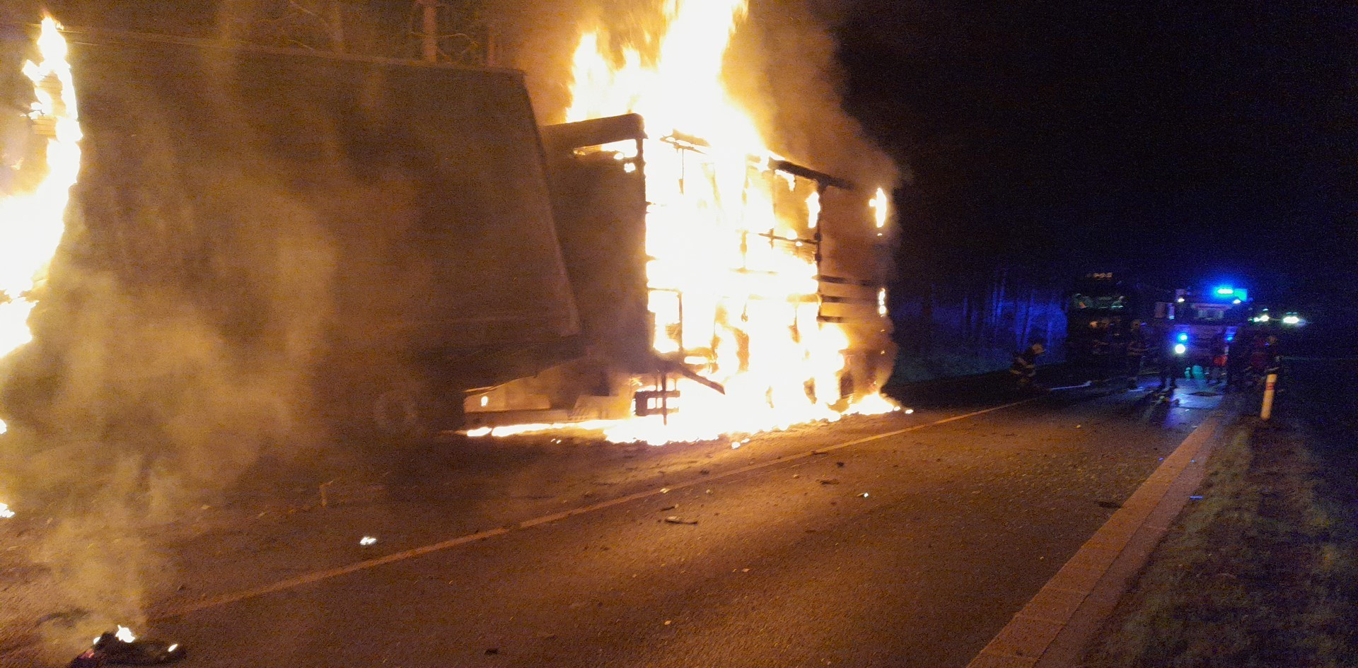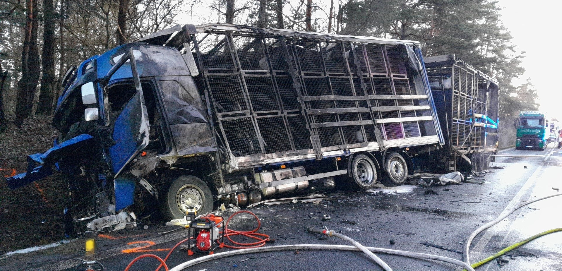 Po nehodě začal kamion i osobák hořet, hasiči vytáhli z vraku jedno tělo