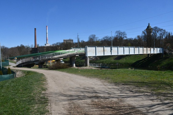 Cyklisté a pěší musí využít provizorní lávku o pár desítek metrů dál.