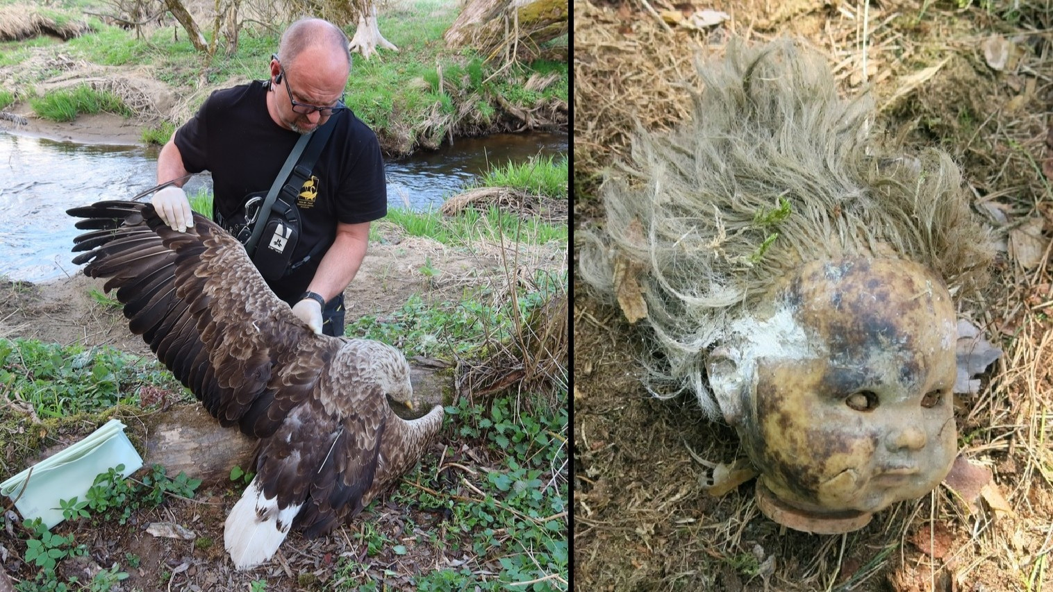 Zahynul orel mořský, který vyrůstal na hnízdě s utrženou hororovou hlavou panenky