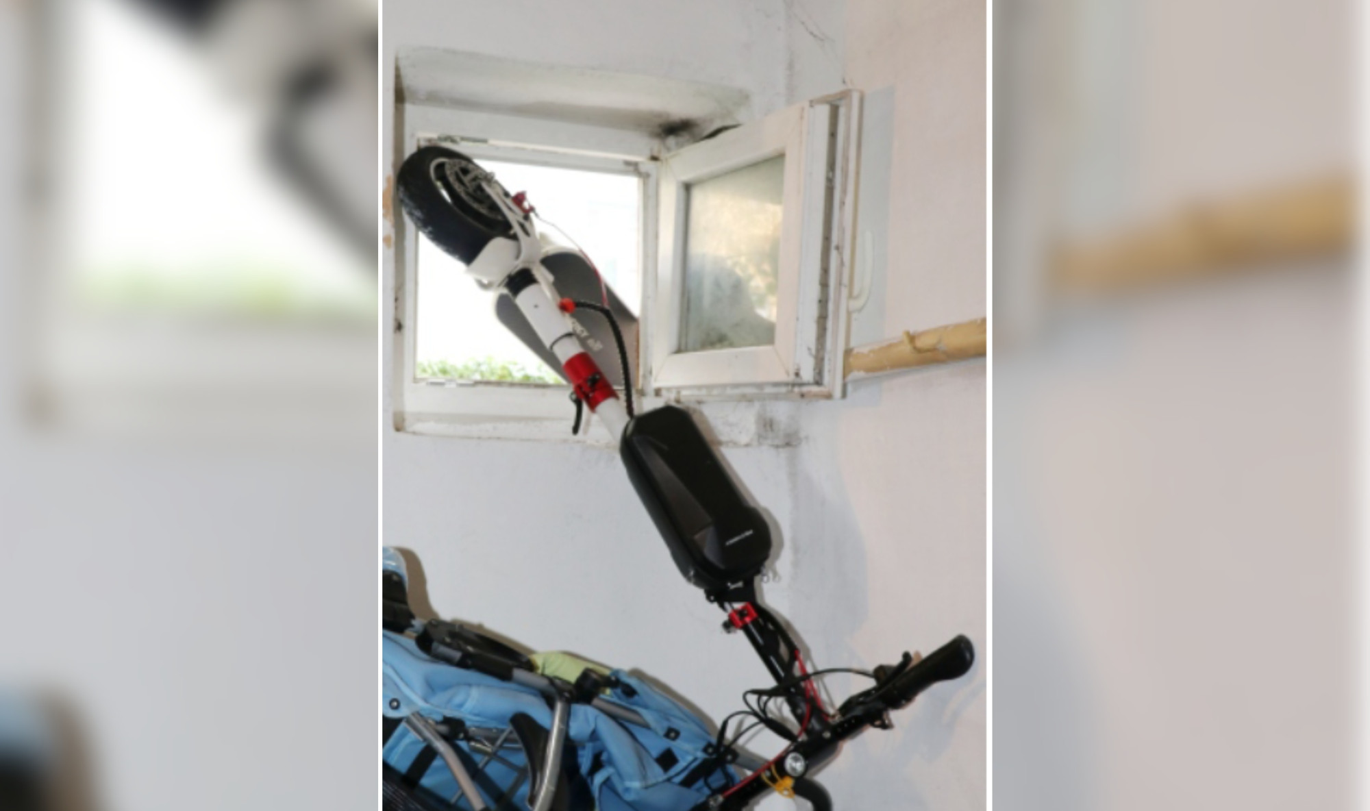 Zloděj měl špatný odhad, skrz okno elektrokoloběžku neprotáhl