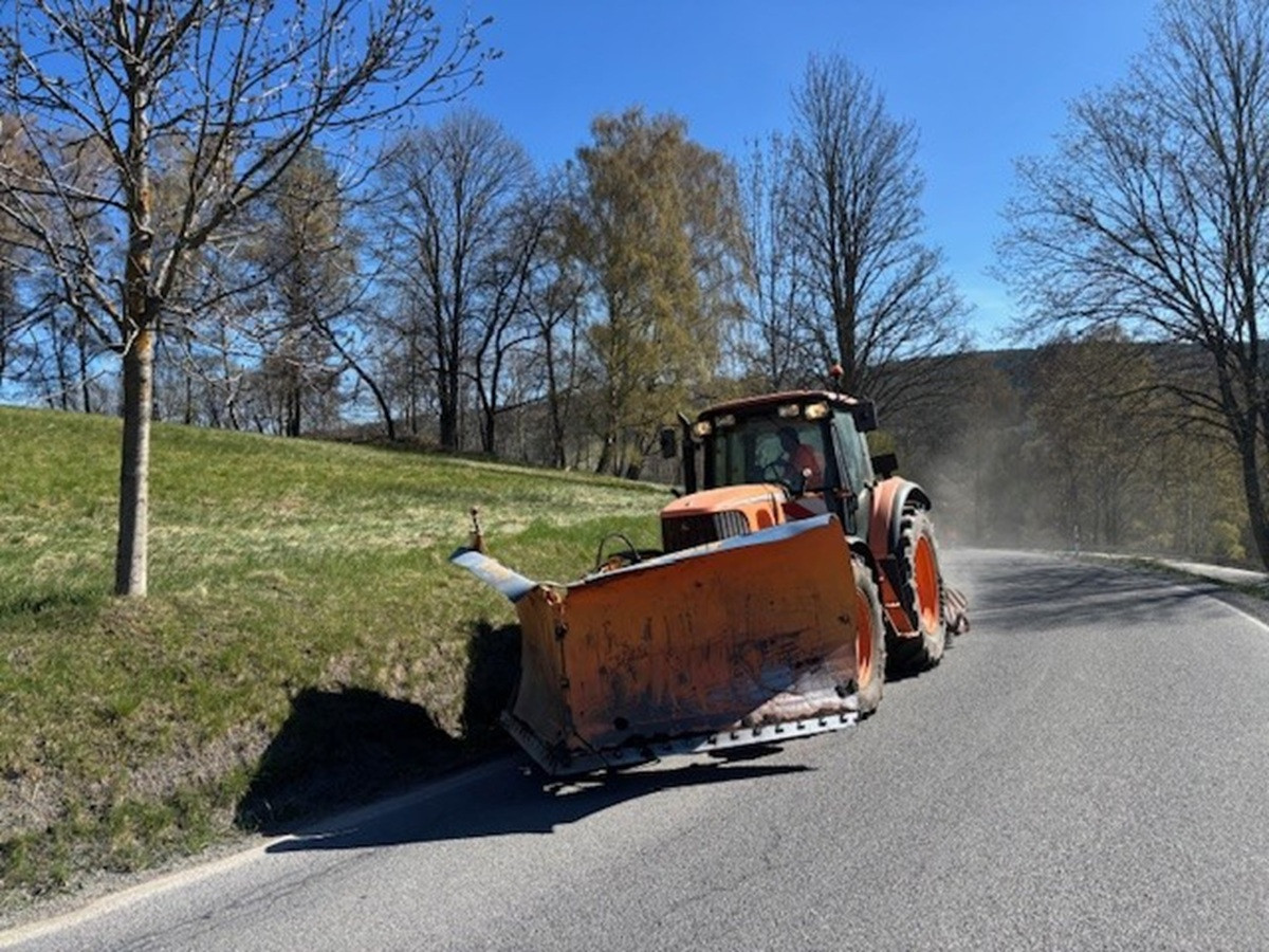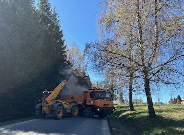 Jarní úklid na Šumavě, silničáři musí odstranit stovky tun posypové drti po zimě