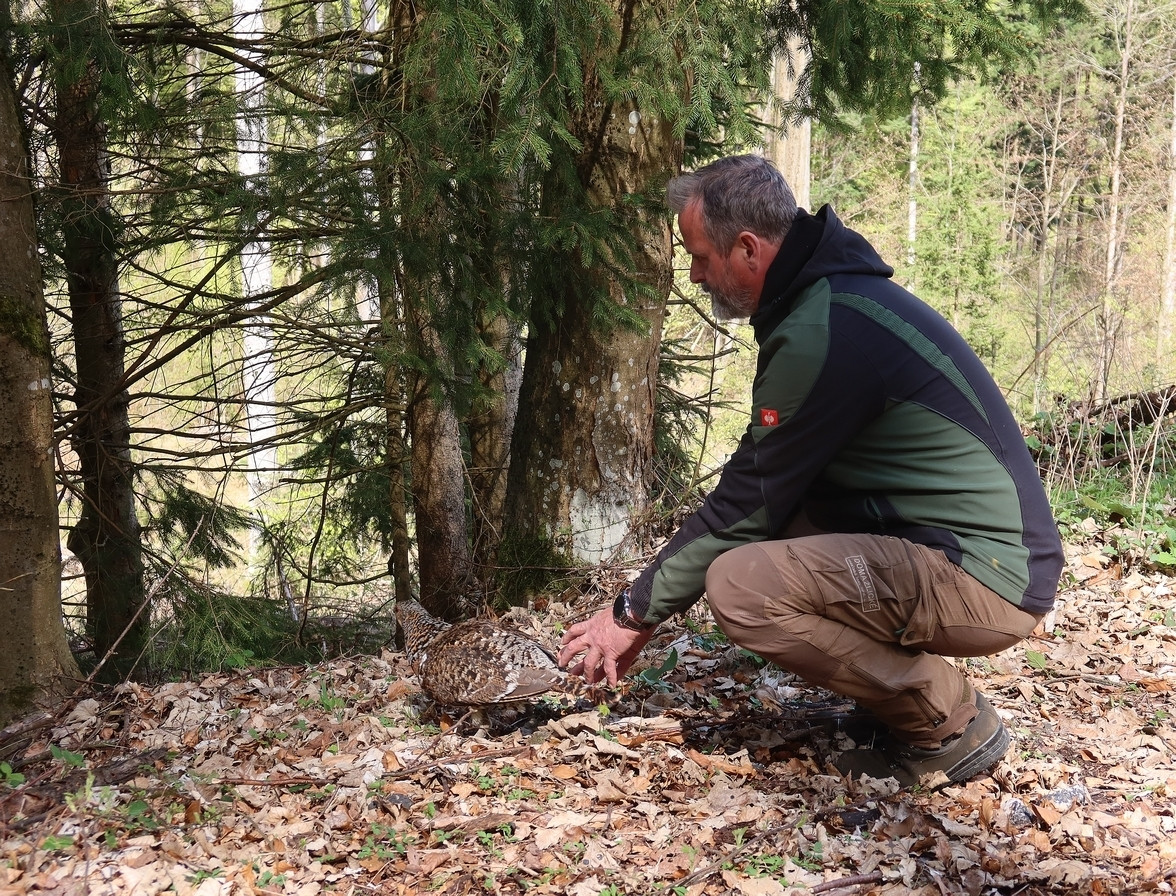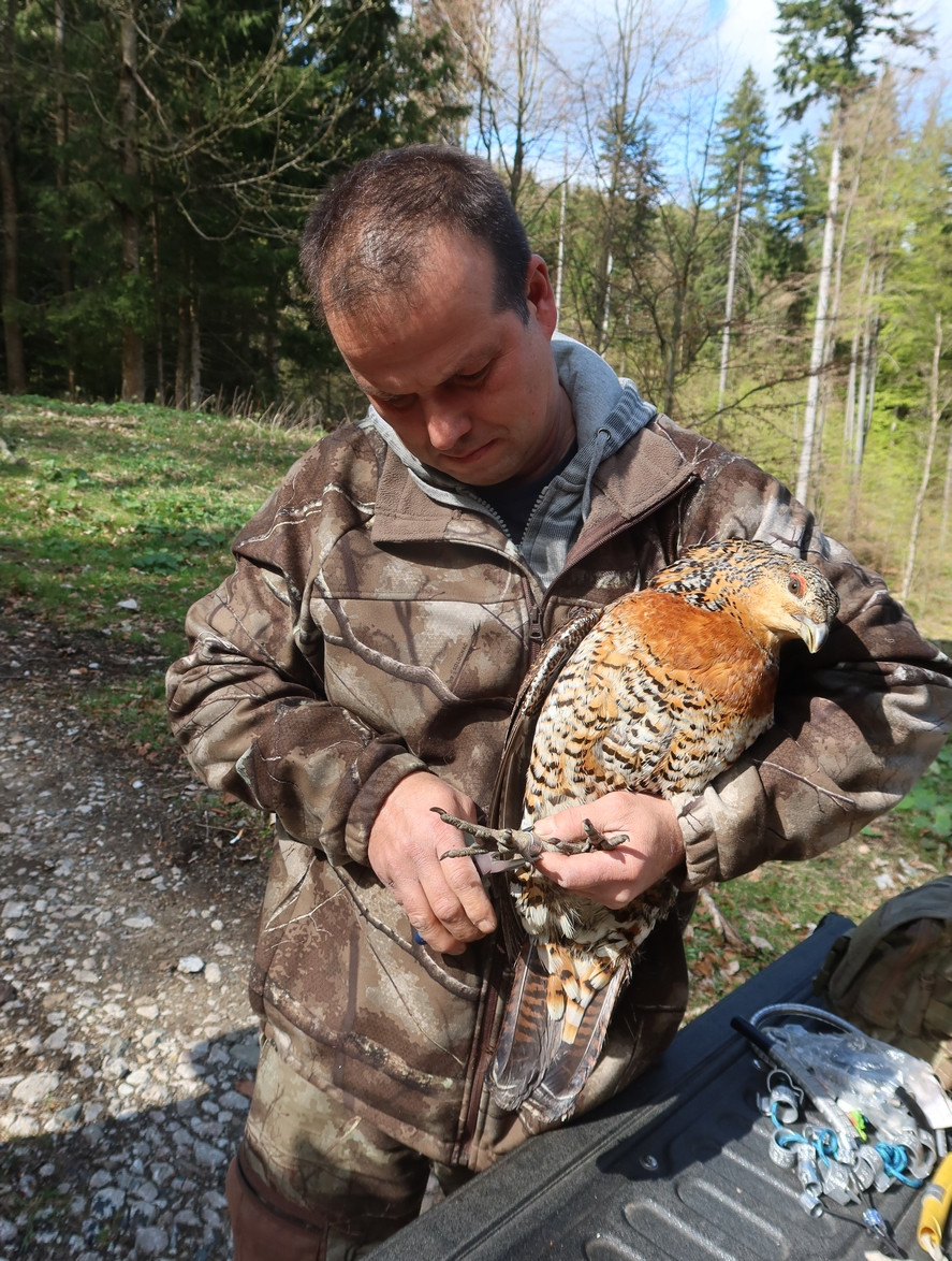 Vypouštění okroužkované samice tetřeva zpět do volné přírody