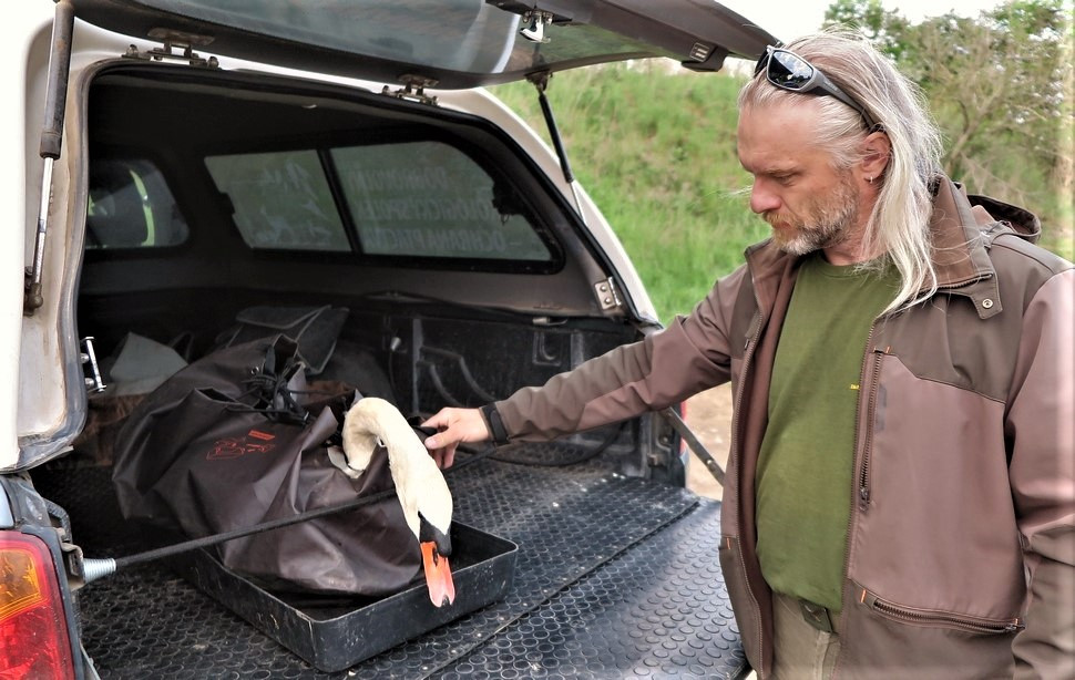 Labuťák krátce po odchycení