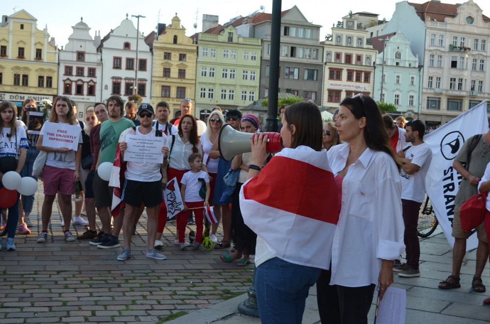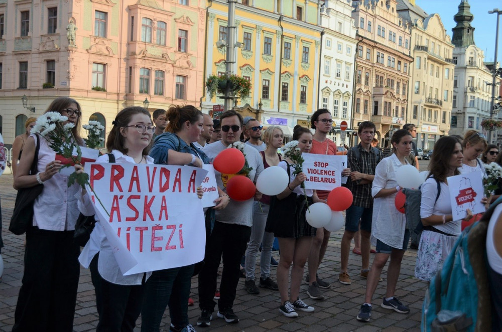Solidaritu s demonstranty vyjádřily v Plzni stovky lidí, většina z nich byli běloruští studenti