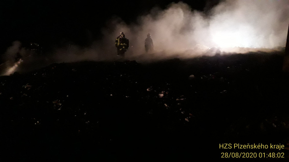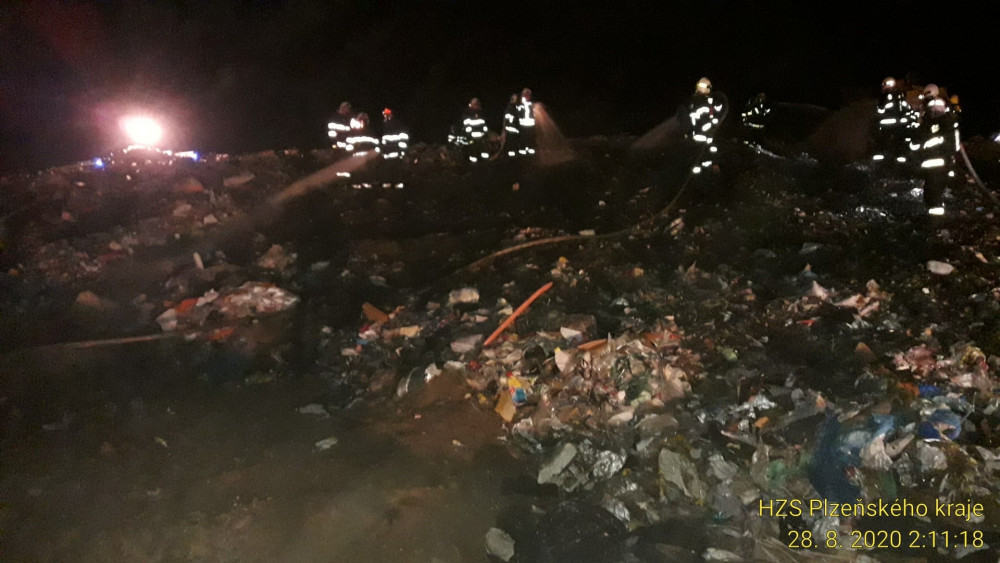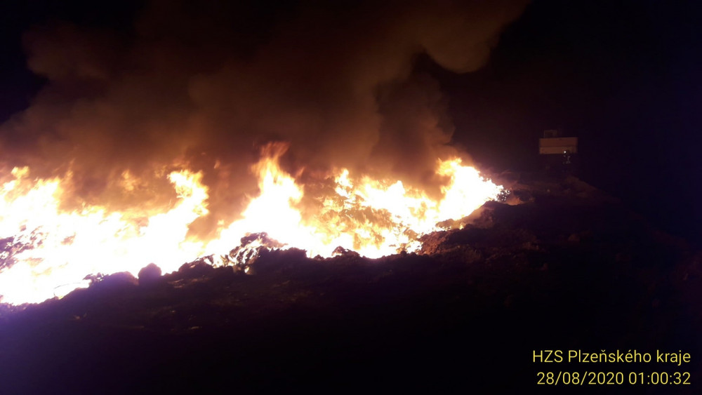 Hasiči v noci bojovali s obřím požárem skládky odpadů, vyhlášen byl druhý stupeň požárního poplachu