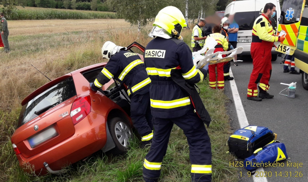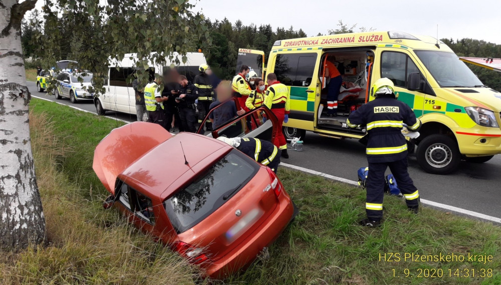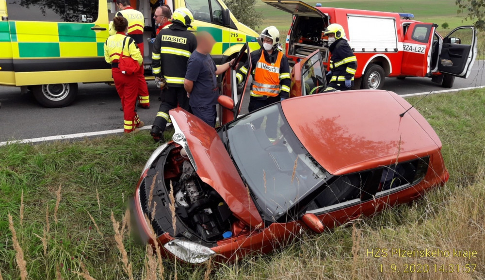 Velká záchranná akce, řidiči (88) se udělalo za jízdy nevolno a s vozem sjel do příkopu