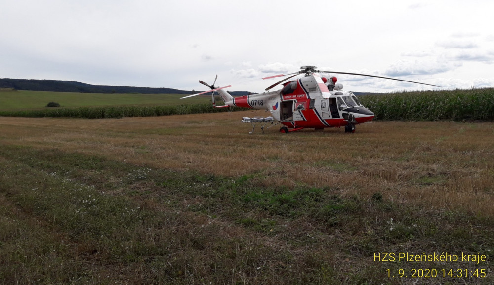 Na místo přiletěl i vrtulník letecké záchranné služby