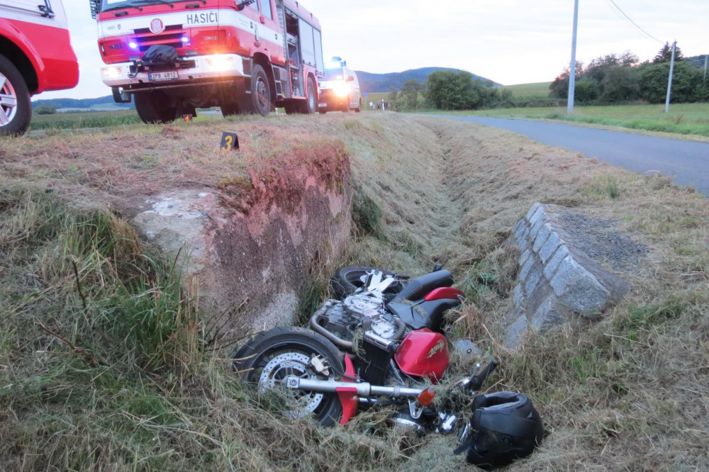 Motorka skončila v příkopu po nárazu do mostku, měla horký motor a zařazený kvalt
