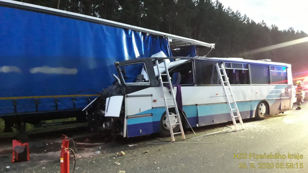 Šestatřicetiletá žena zahynula v autobusu, který u Sulkova narazil do odstaveného kamionu