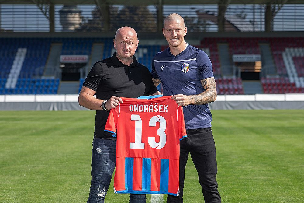 Zdeněk Ondrášek s generálním manažerem klubu Adolfem Šádkem a s novým dresem