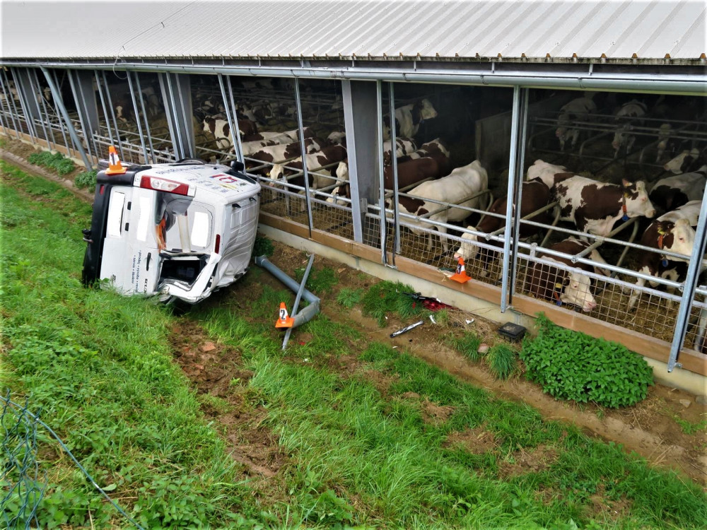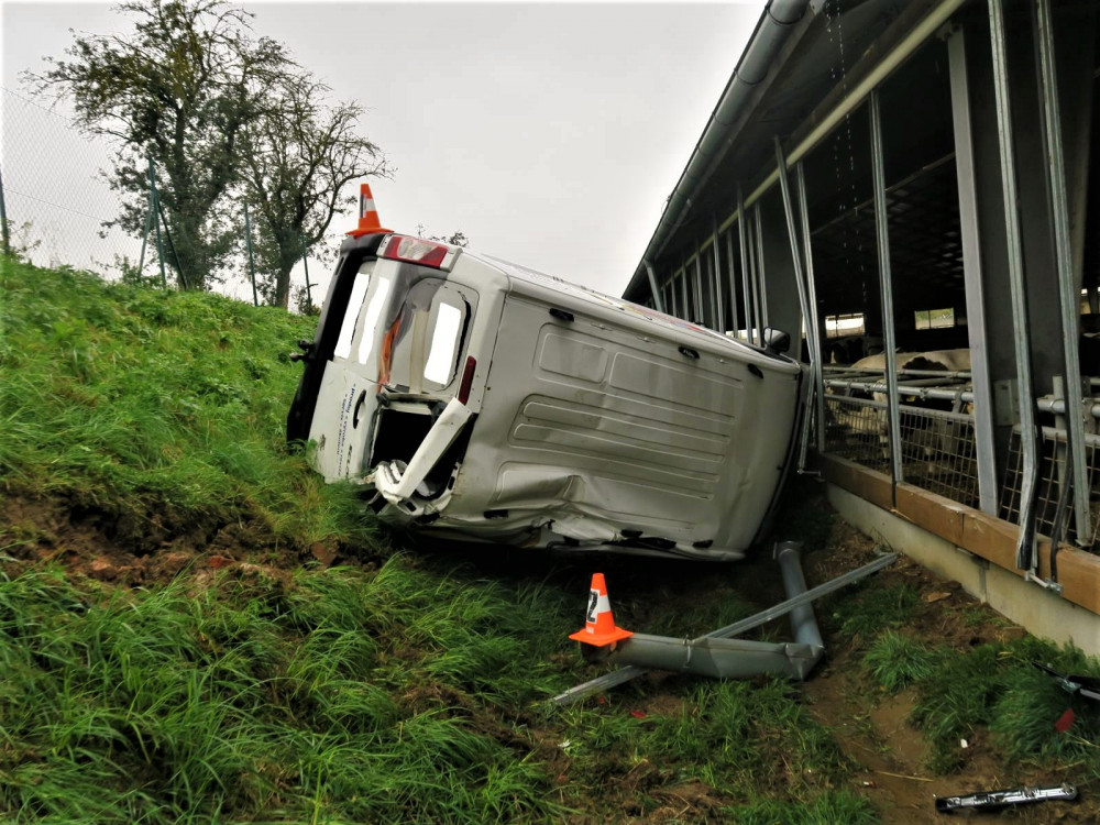 Jeden motorista vletěl s vozem téměř mezi krávy, další zdemoloval sloup elektrického vedení