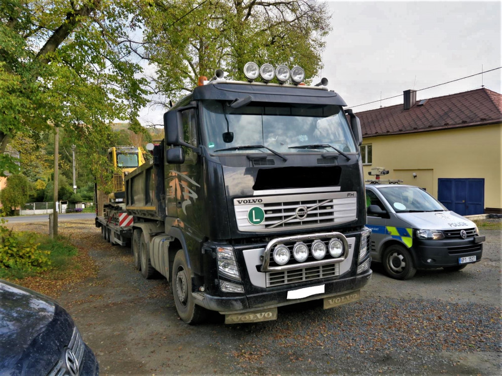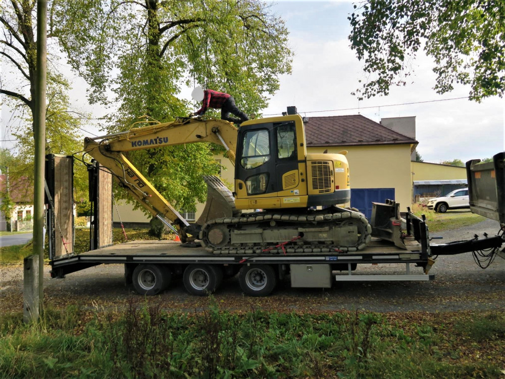 Řidič neodhadl výšku železničního podjezdu, naloženým bagrem ho poškodil