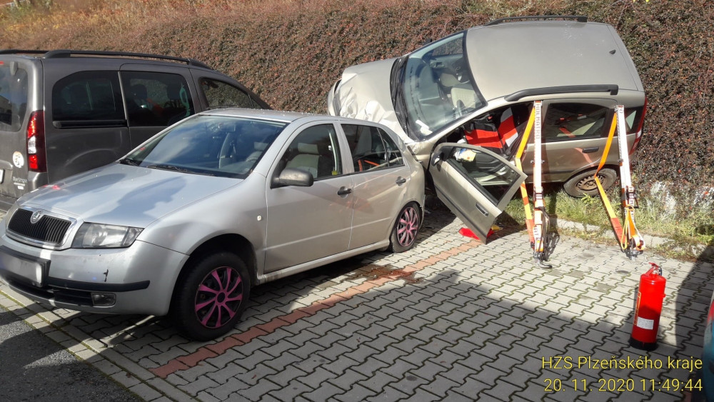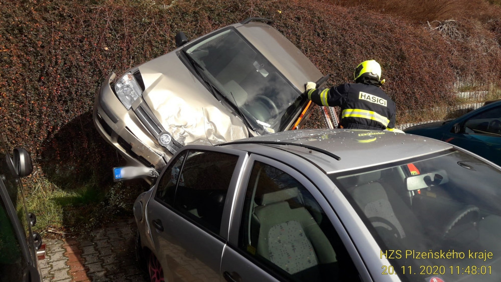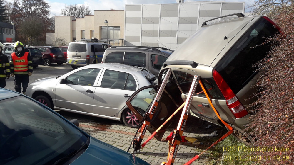 Senior (84) se zřítil na parkovišti z několikametrového srázu na jiný vůz