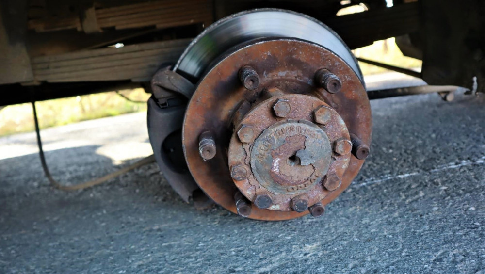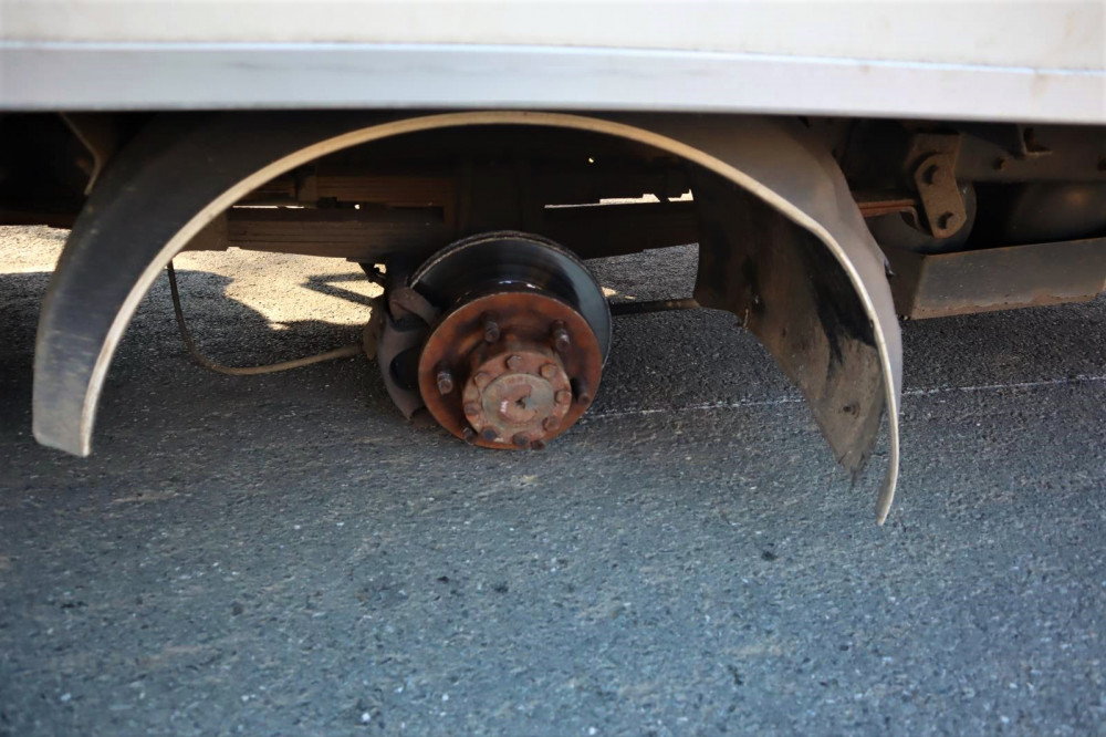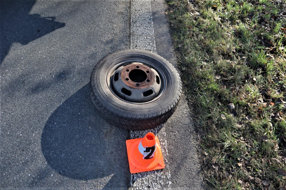 Řidiči náklaďáku za jízdy upadlo kolo a skončilo v potoce