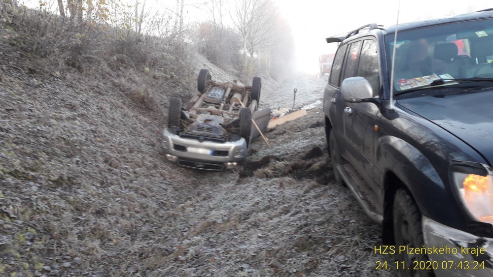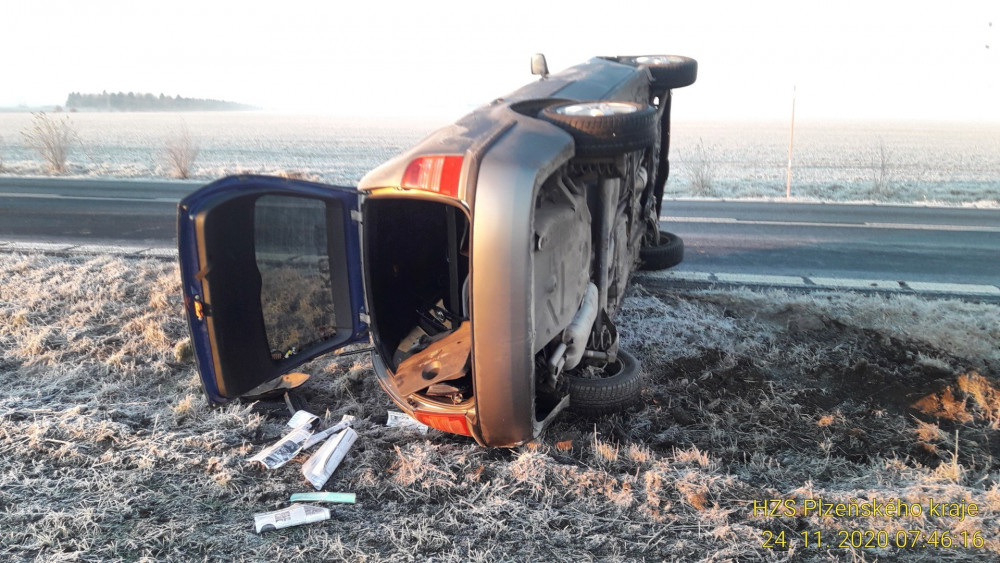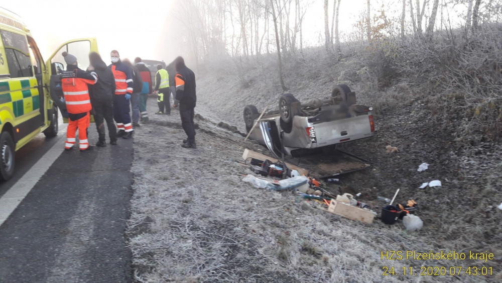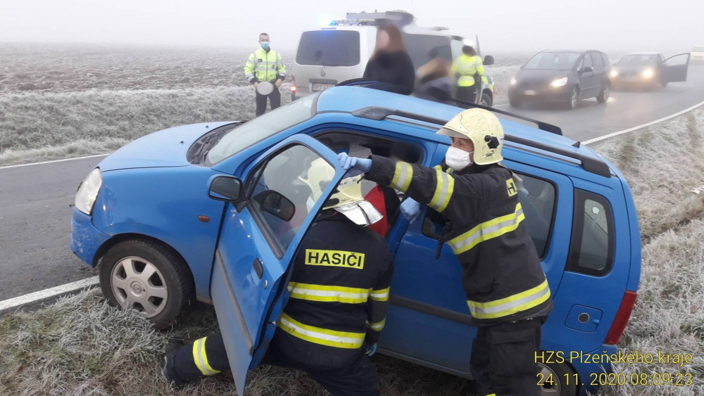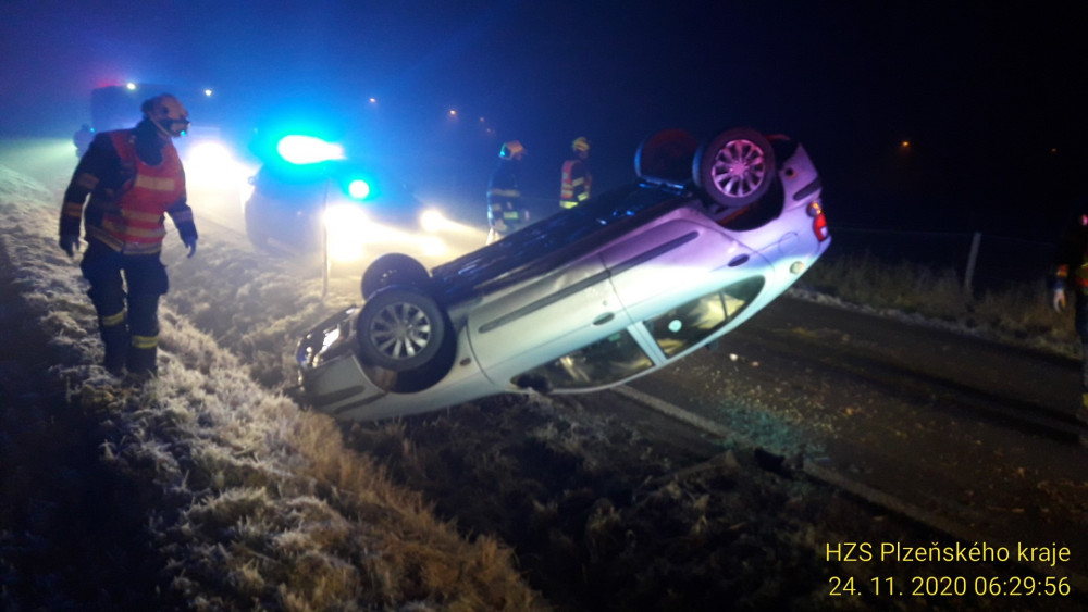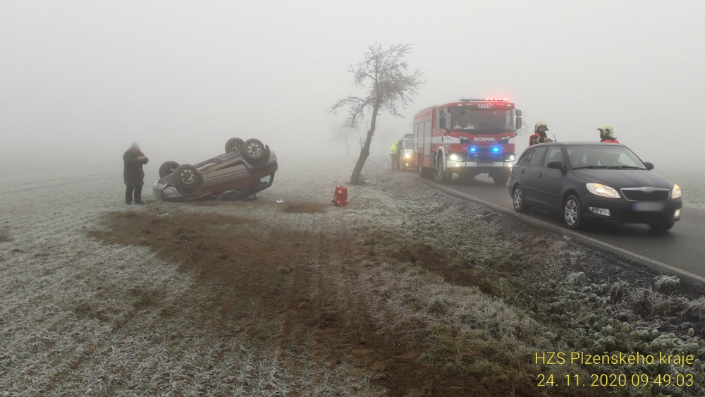 Pozor na kluzké vozovky, od rána vyjíždějí hasiči k množství nehod. Nejhorší situace jen na I/20 na severním Plzeňsku