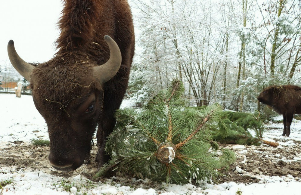 Na neprodaných vánočních stromcích si v plzeňské zoo pochutnávají například zubři