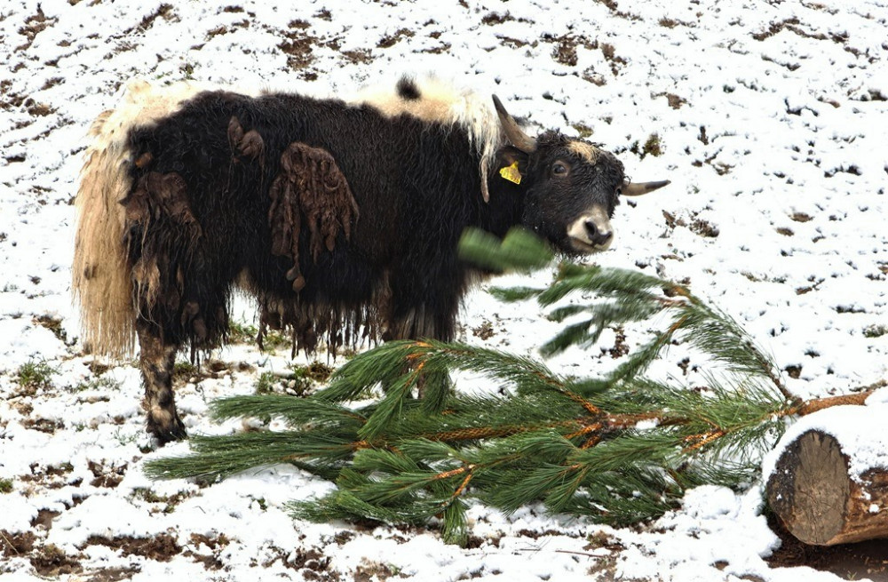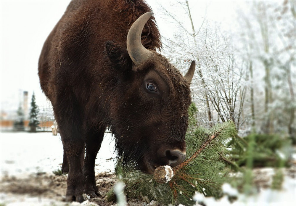 Na neprodaných vánočních stromcích si v plzeňské zoo pochutnávají například zubři