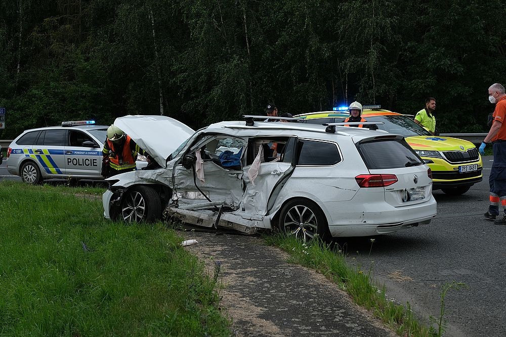 Při srážce dvou osobáků zahynul na křižovatce u obce Seč řidič tohoto vozu