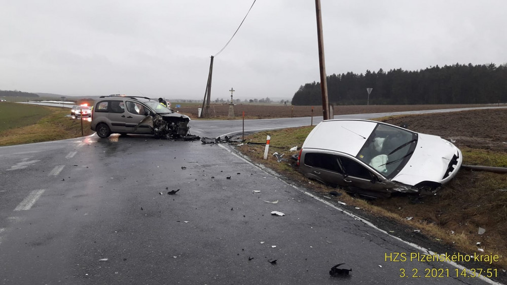 Nehoda dvou osobáků na Domažlicku, při níž se zranili čtyři lidé