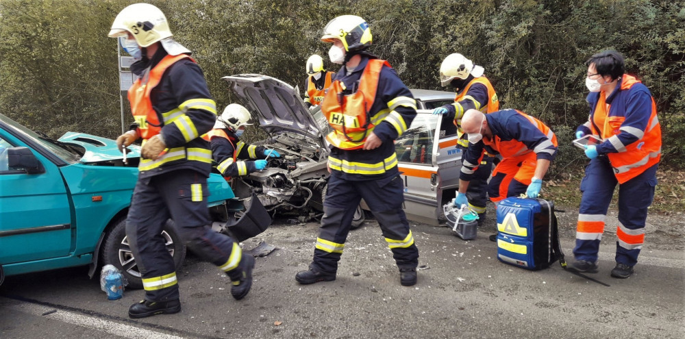 Čtyři lidé se vážně zranili při srážce dvou osobáků, zásah letecké záchranky znemožnilo špatné počasí