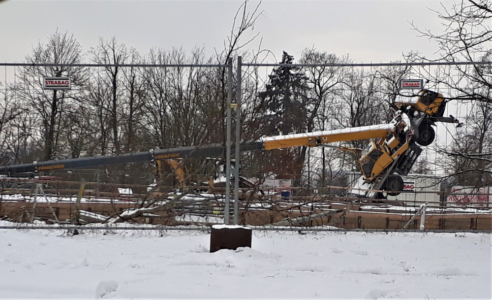 Těžké břemeno v Plzni převážilo autojeřáb, ten visel několik hodin ve vzduchu