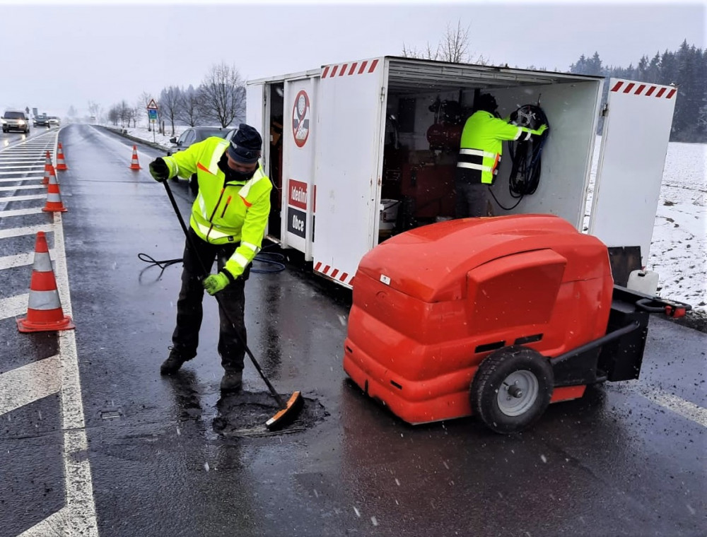 Pokud to počasí dovolí, opravují se výtluky na vozovkách