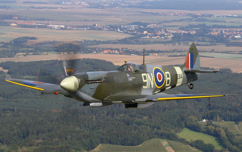 Spitfire TE184 v novém továrním markingu z Castle Bromwich na počest slavného československého stíhače 313. Squadrony a pozdějšího zalétávače 1287 vyrobených Spitfirů Václava Jíchy