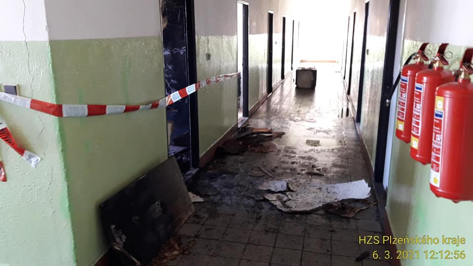 Po výbuchu a požáru v plzeňské ubytovně vyskočil z okna popálený muž, utrpěl vážná zranění
