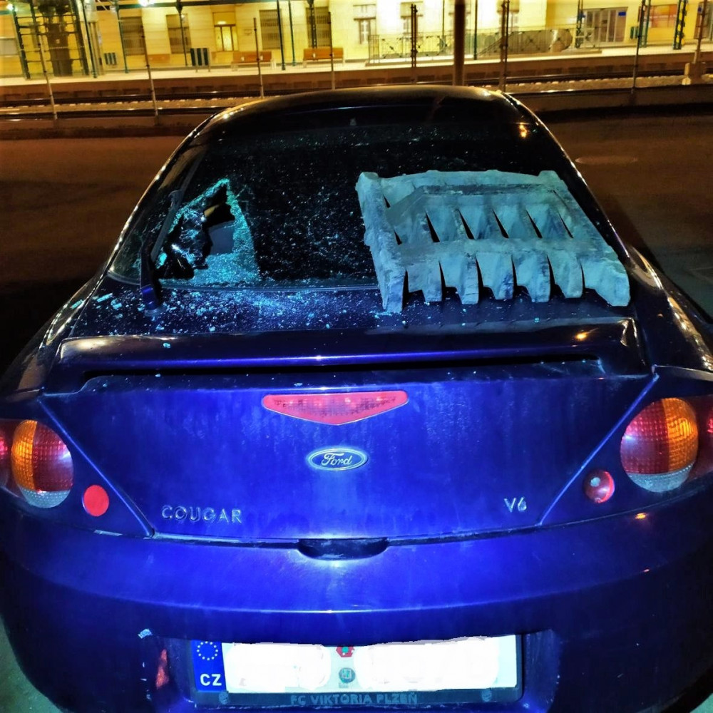 Opilec zasekl kovový kanál do zadního okna zaparkovaného automobilu