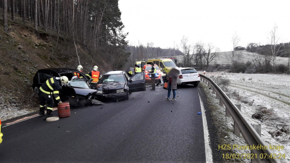 Od nehody tří osobáků odvezli záchranáři do nemocnic tři zraněné řidiče