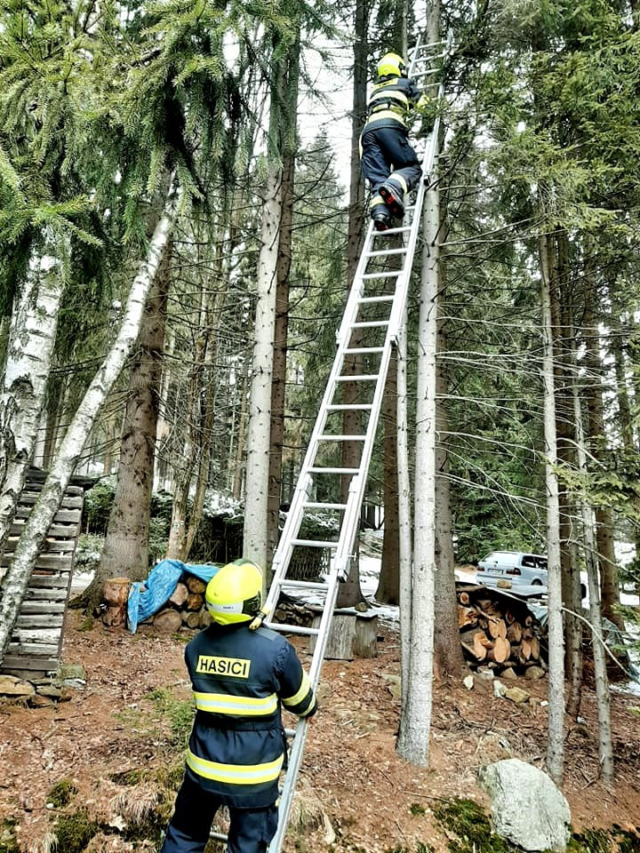 Hasiči zachraňovali ze stromu kocoura také na Špičáku