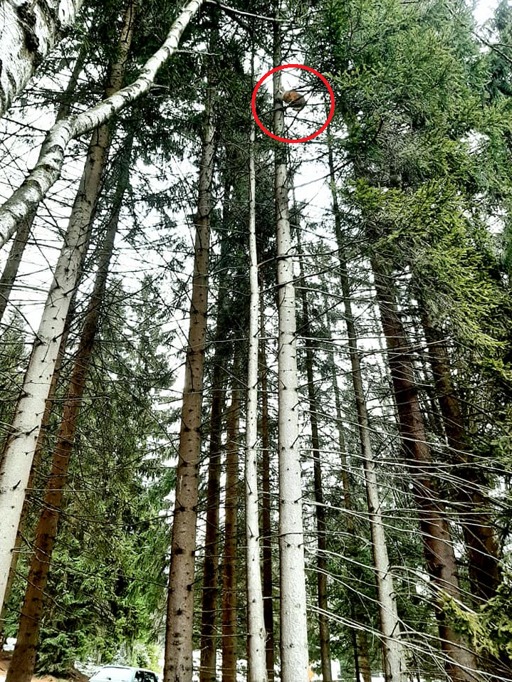 V tuto chvíli začala kočka šplhat až k vrcholku stromu