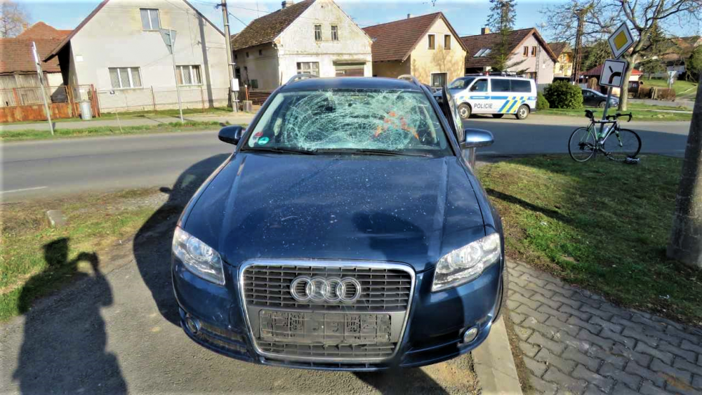 Tento vůz srazil staršího cyklistu, který utrpěl zranění
