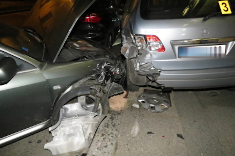 Opilá řidička si spletla pedály. Zrušila svou audinu i BMW s Mercedesem, do kterých narazila
