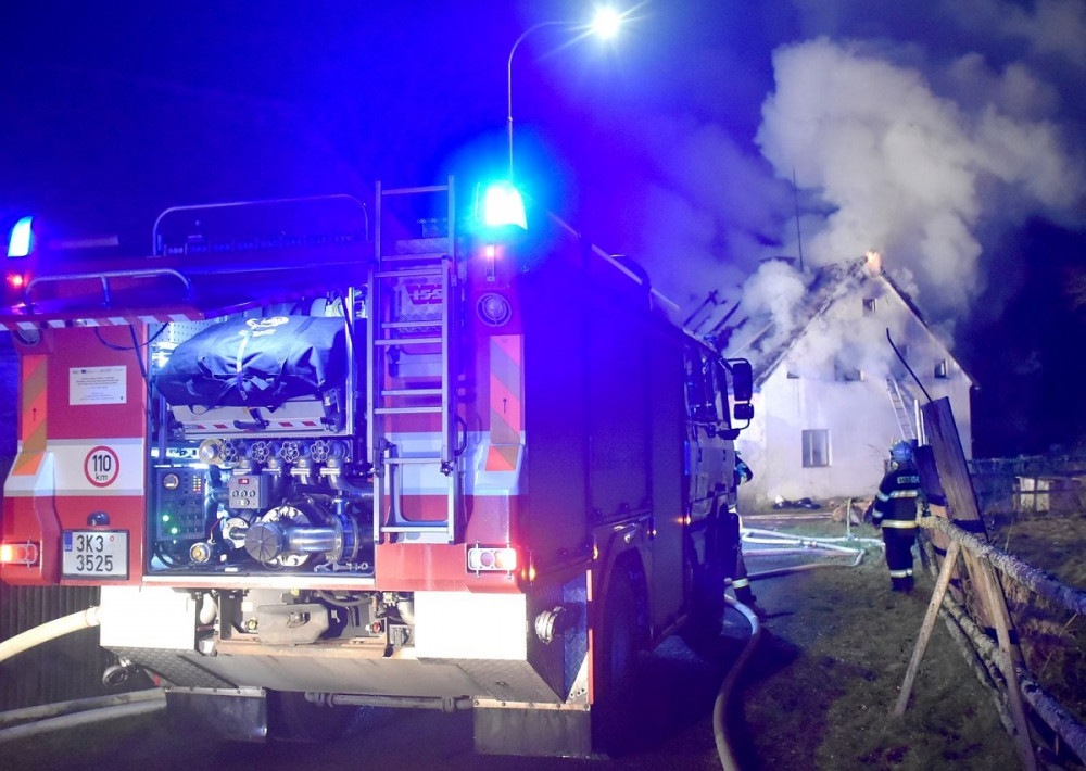 Oheň zachvátil rodinný dům, žena a tři děti se nadýchaly kouře