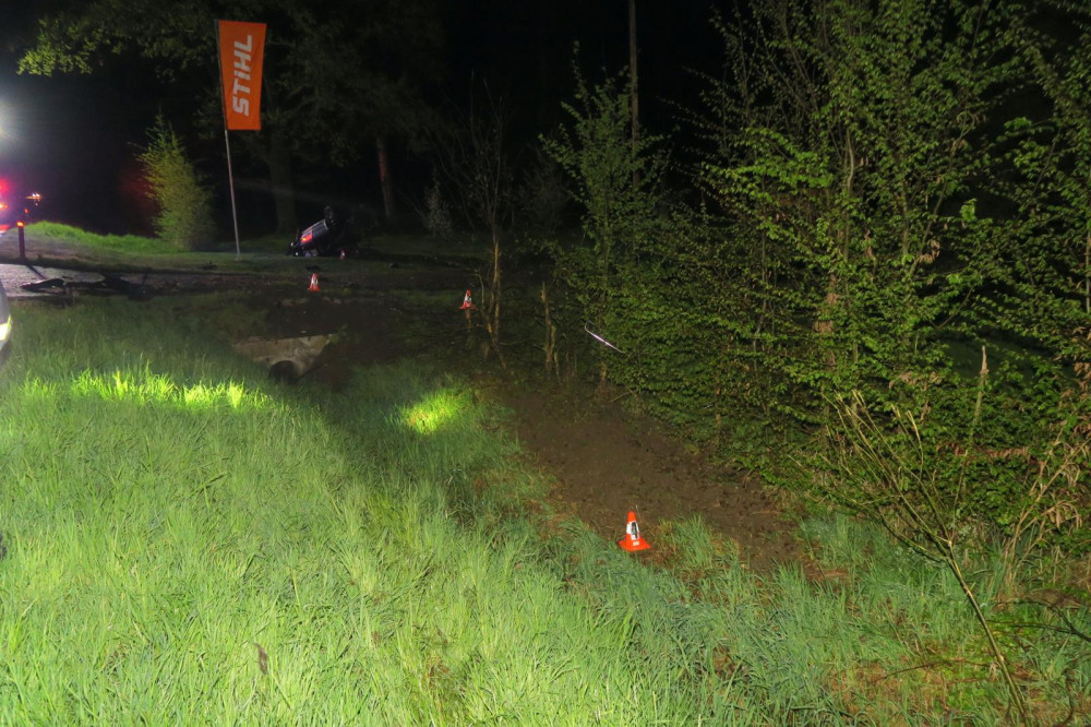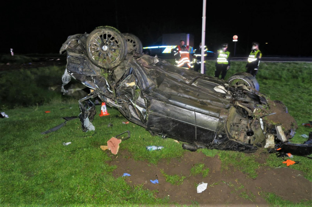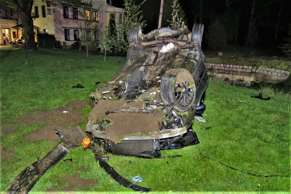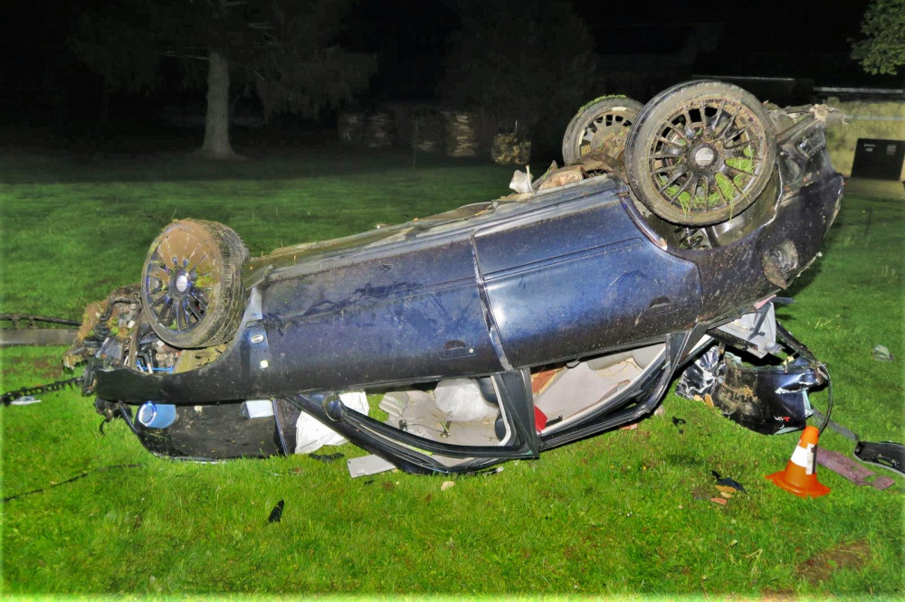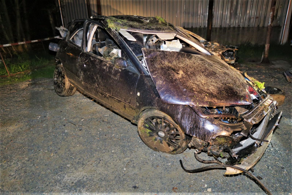 Mladý řidič Audi nezvládl jízdu na mokré silnici, narazil do stromů, do mostku a vážně se zranil